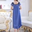 Koyu Mavi Yaz Gecelik Bağcıklı Uyku Rahat Güzel Sahte Saten Yaz Gevşek Gecelik Ev Giyim Xl Koyu Mavi