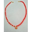 Koyu Turuncu Kristal Cam Boncuklu Bayan Kolye