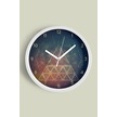 Kozmik Piramit Modern Tasarım Duvar Saati - 35cm - Önü Camlı Beyaz Kasa - Sessiz Mekanizma Beyaz