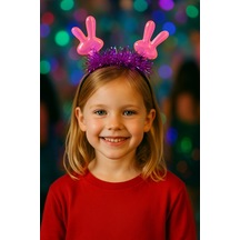 Kpop Korean Style Yılbaşı Yeni Yıl Pembe Tavşan Kulaklı Mor Işıltılı Çocuk Parti Taç Aksesuarı