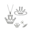 Kral Tacı Taşlı Kolye Küpe Yüzük Kadın Üçlü Gümüş Set Yst15