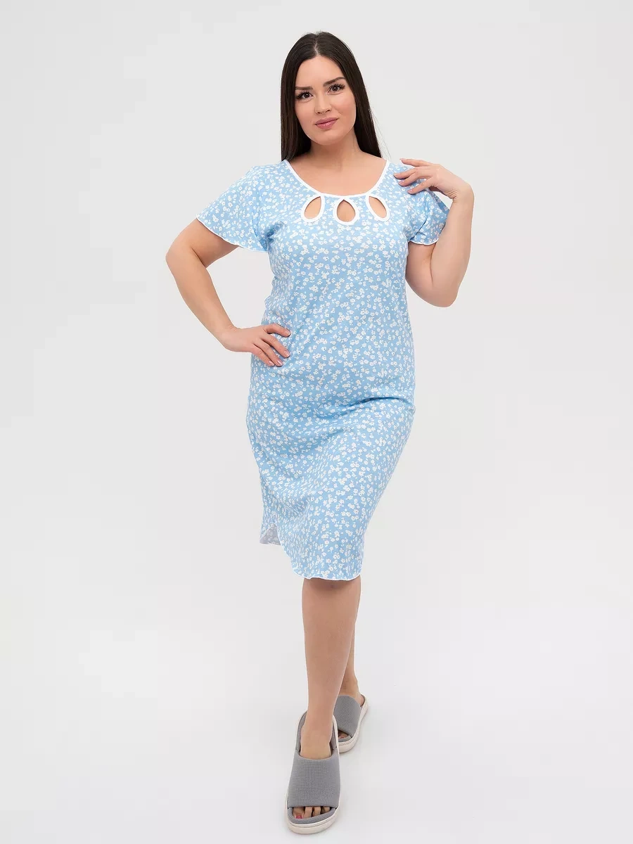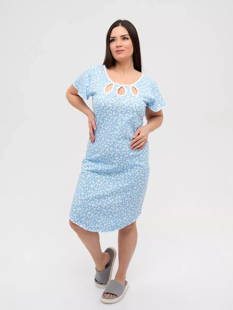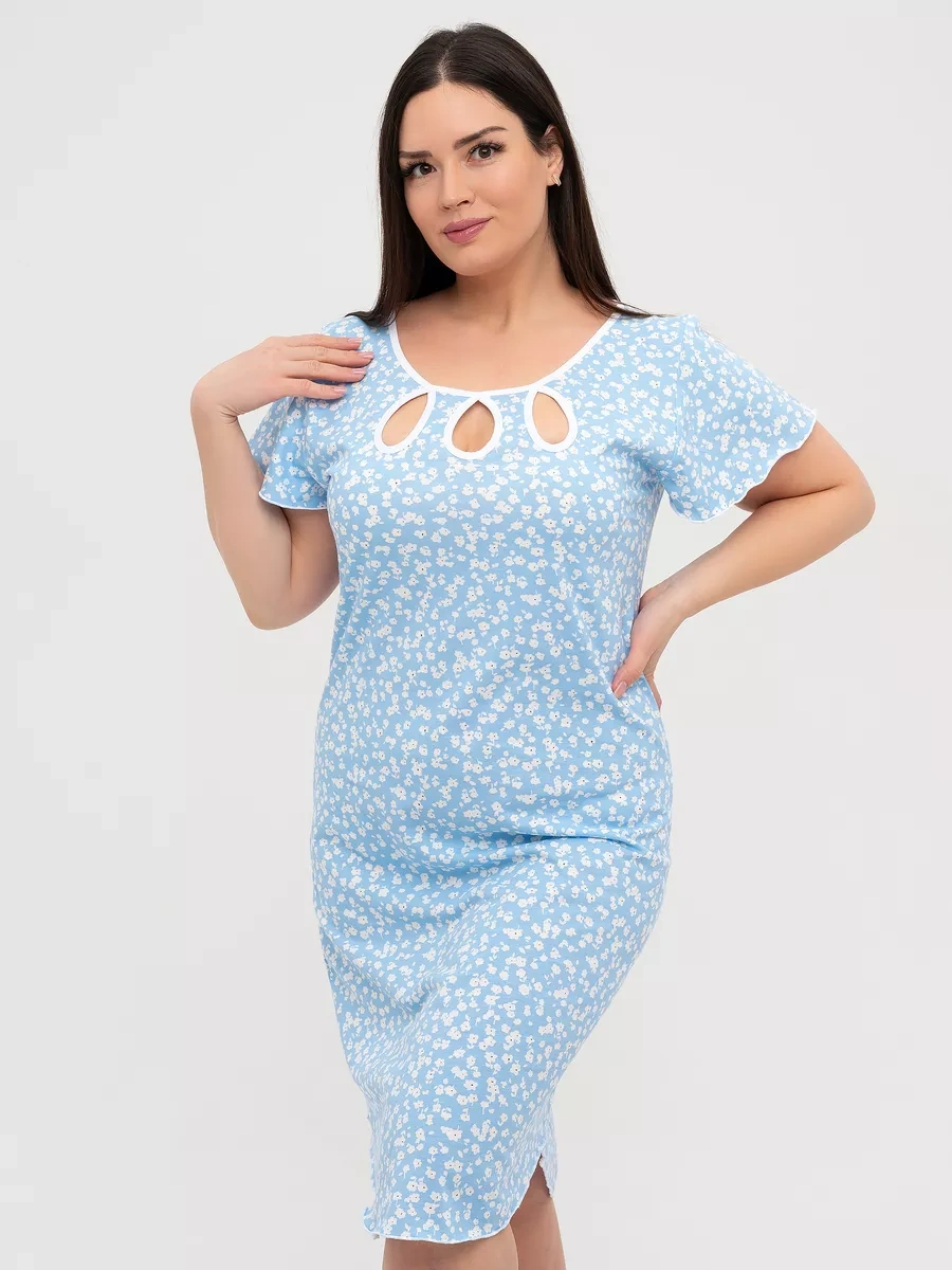 Krasnaa Vetka Büyük Beden Gece Elbisesi, %100 Pamuklu Triko 223110476 Açık Mavi