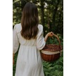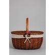 Krem Kumaş Detaylı Hasır Piknik Sepeti 40x30x19 Cm Kapaklı Termoform Sepet Brown