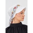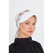 Krem Şapkalı Tesettür Bone Kesik Elyaf Desenli Şifon Kemerli 1902 Krem