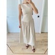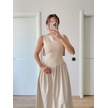 Krep Arkası Kanat Arka Ön Pens Detaylı Uzun Kadın Elbise - Bej Bej