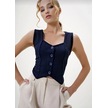 Krep Kumaş Düğmeli Yelek Lacivert S3395 Lacivert