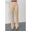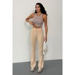 Krep Kumaş Likralı Önü Çimalı Kahverengi Kadın Palazzo Pantolon Bej