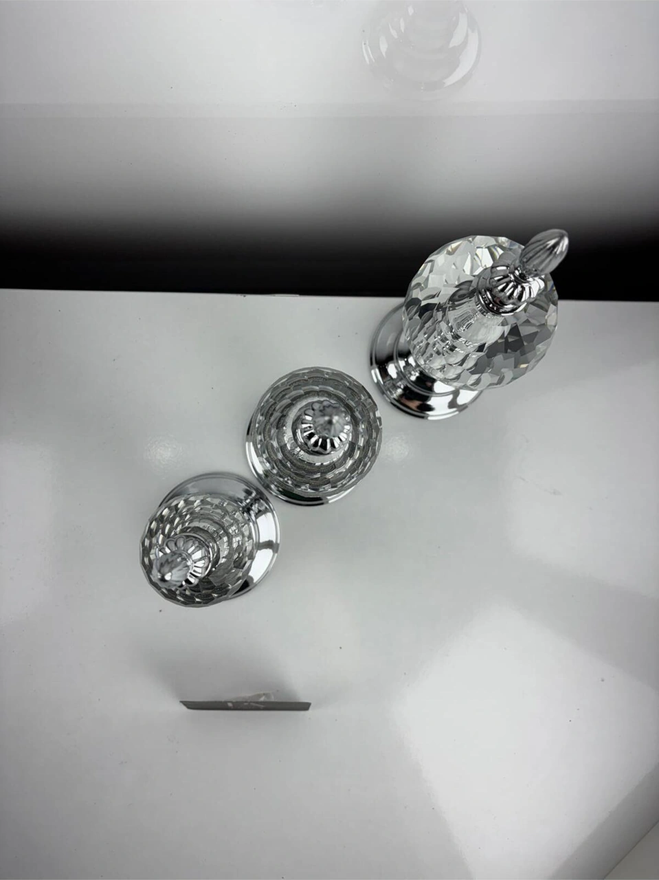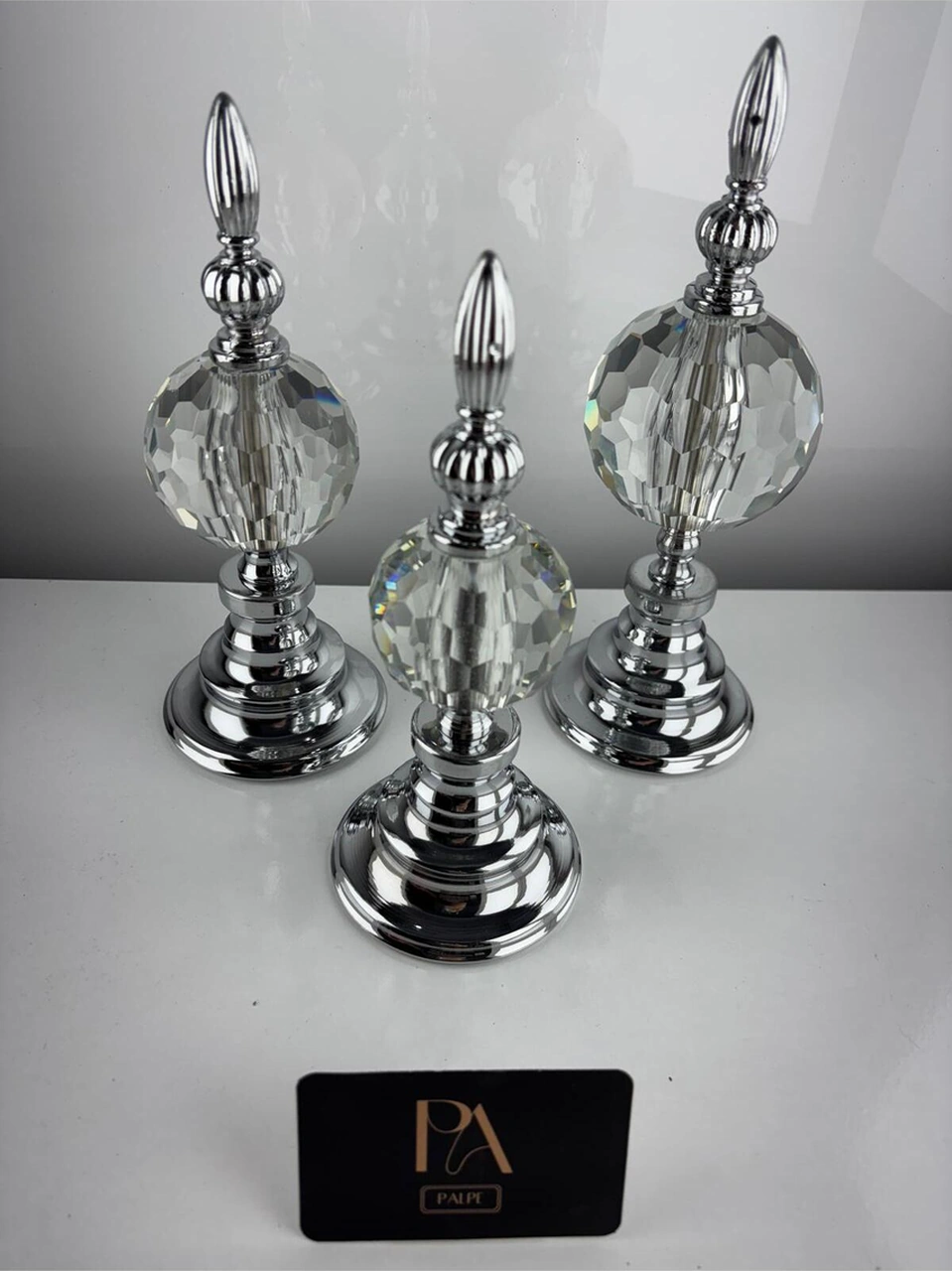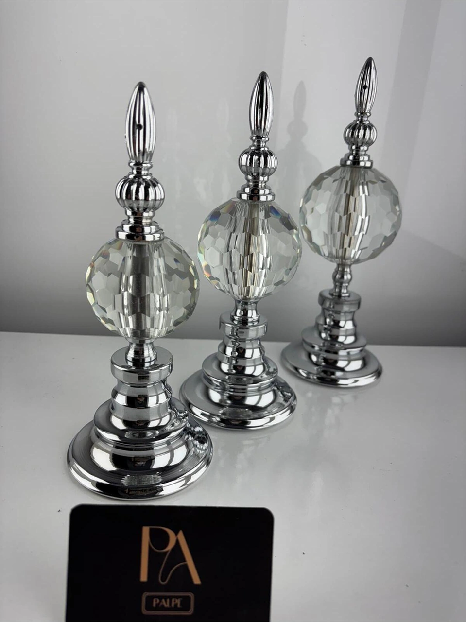 Kristal 3lü Metal Dekoratif Obje Biblo Süs Eşya Salon Aksesuar Tv Sehpa Masa Konsol Ofis Salon Dekor