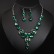 Kristal Değerli Taşlar, Köprücük Kemiği Gerdanlığı Küpe Seti, Su Damlası Kadın Aksesuarları Yeşil