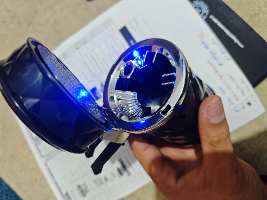 Kristal Pırlanta Taş Görünümlü Mavi Led Işıklı Lüx Oto Küllük Kapaklı Araç İçi Küllük Siyah