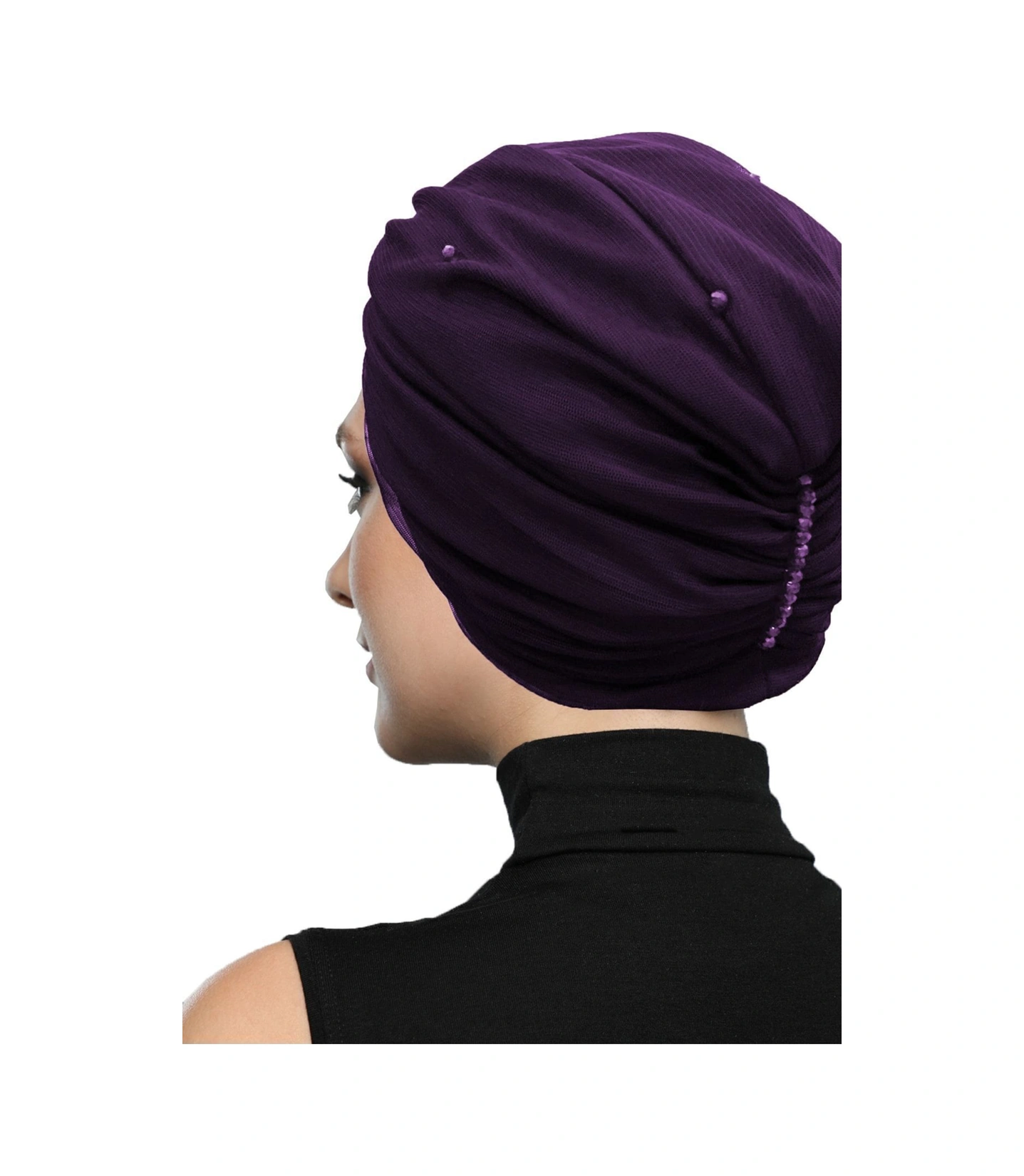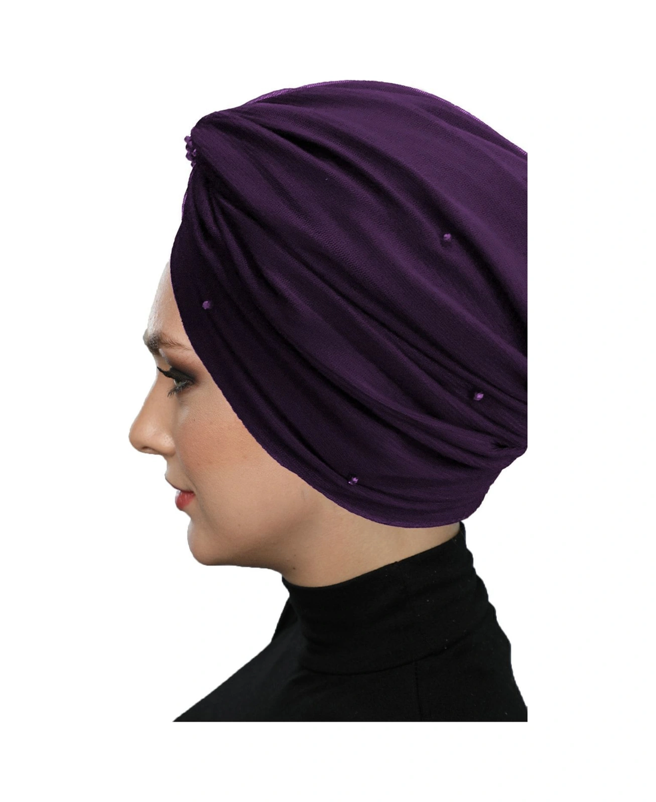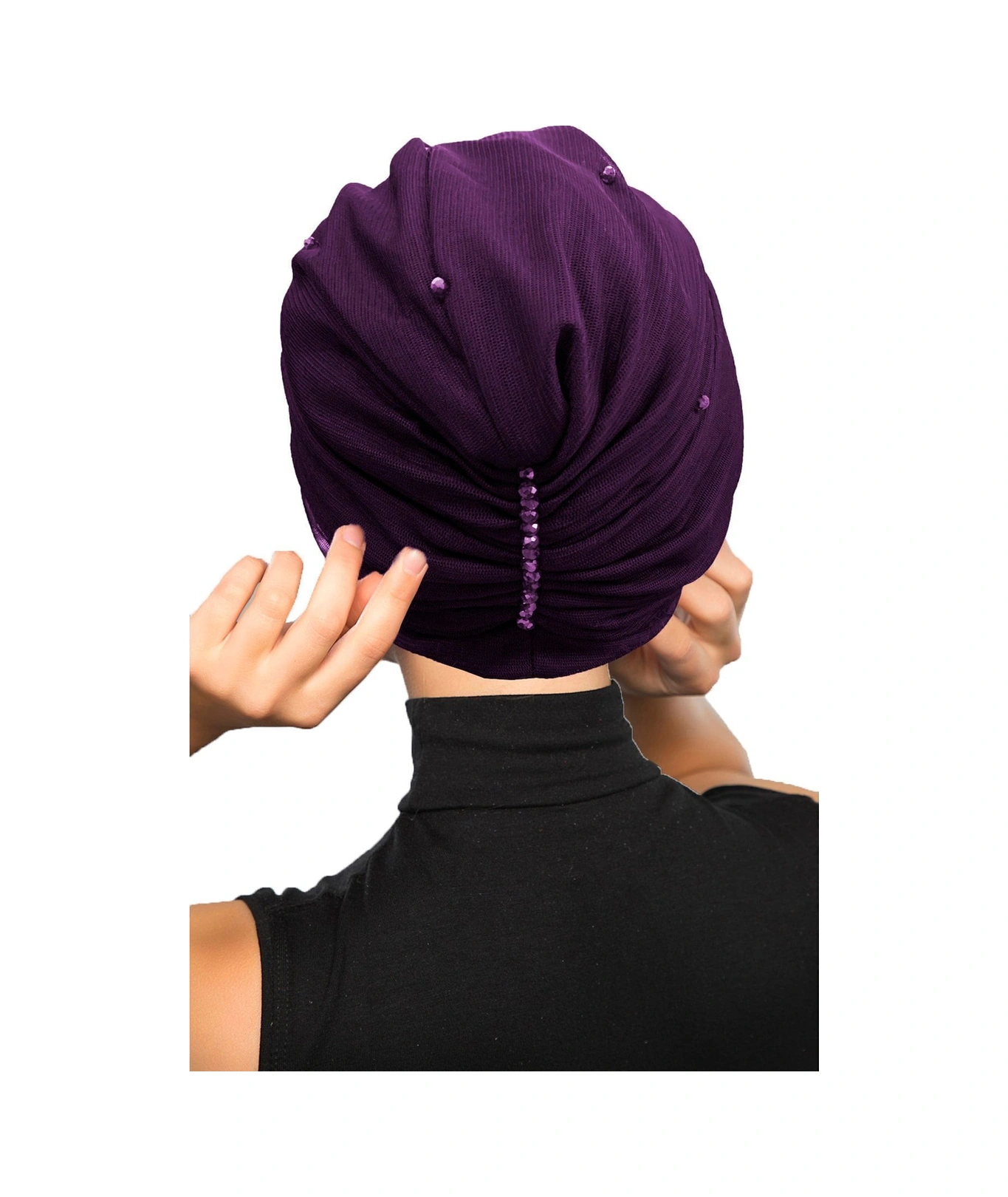 Kristal Tüllü Astarlı Mor Hazır Türban Tesettür Abiye Bone Mor