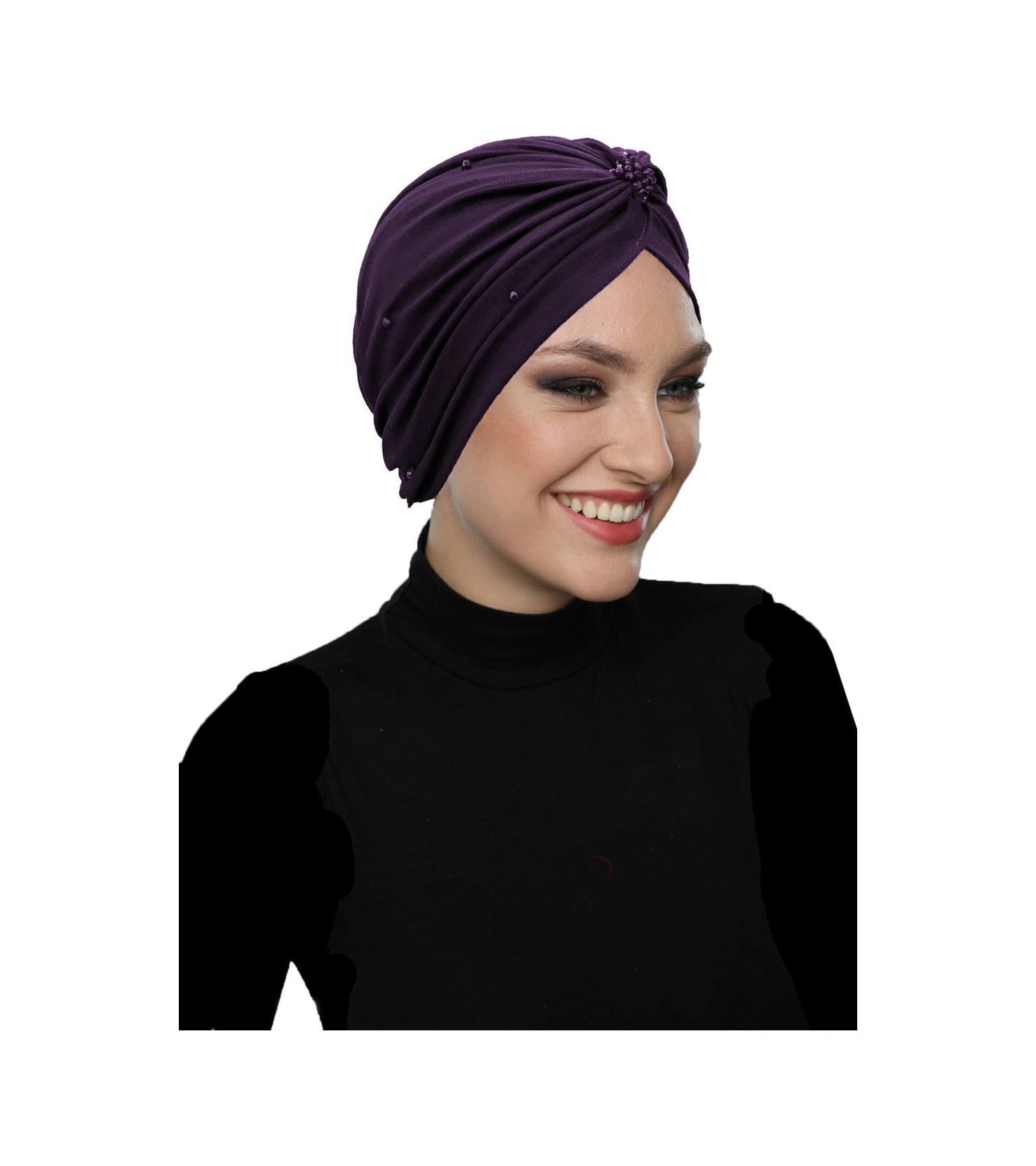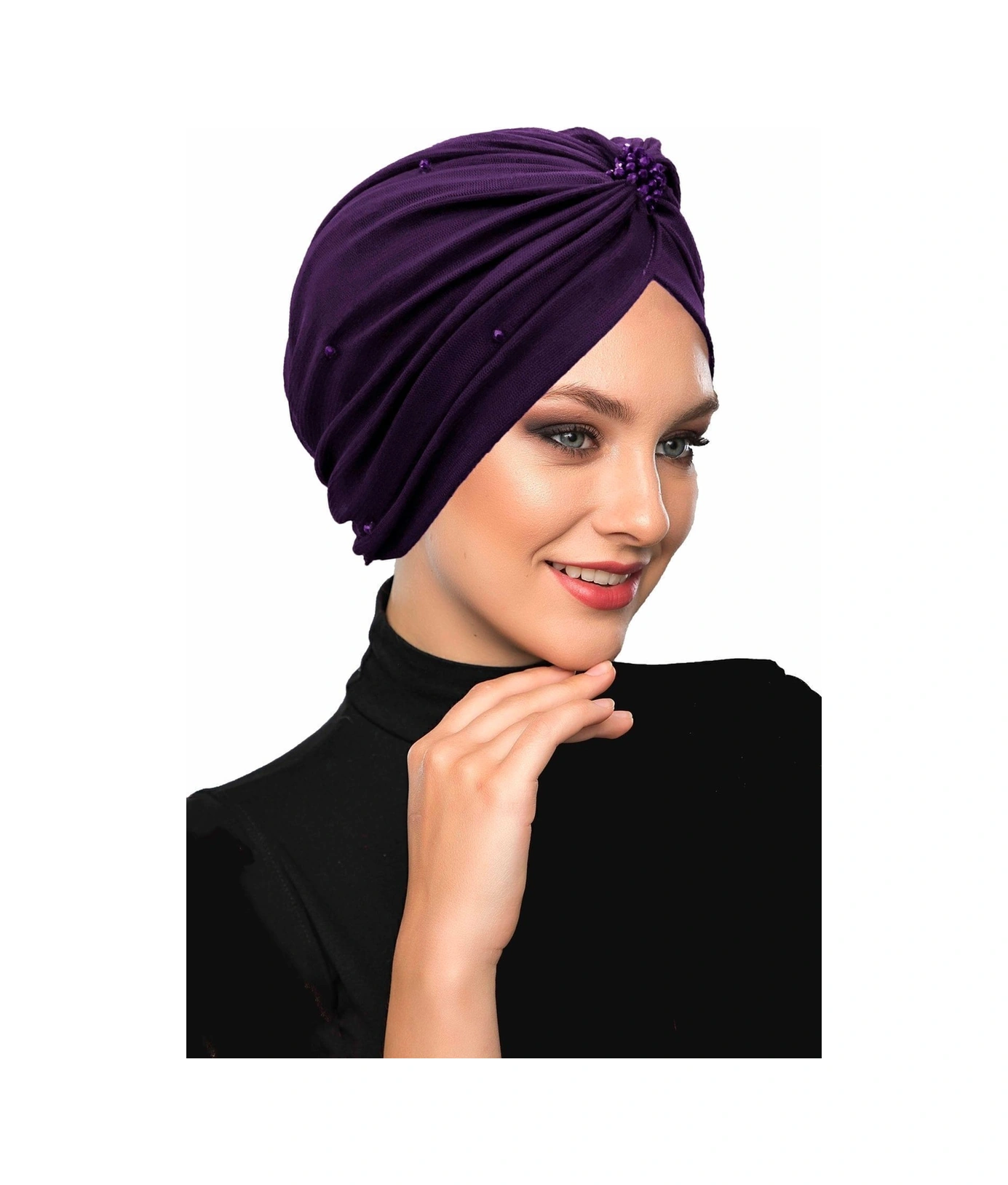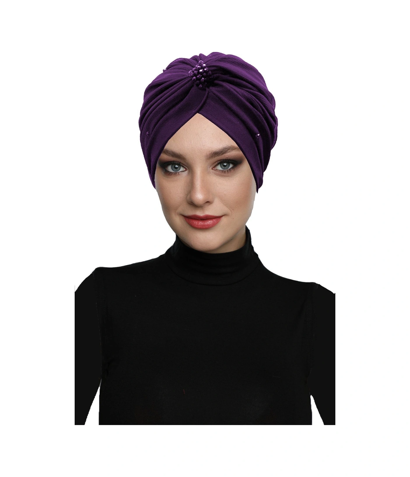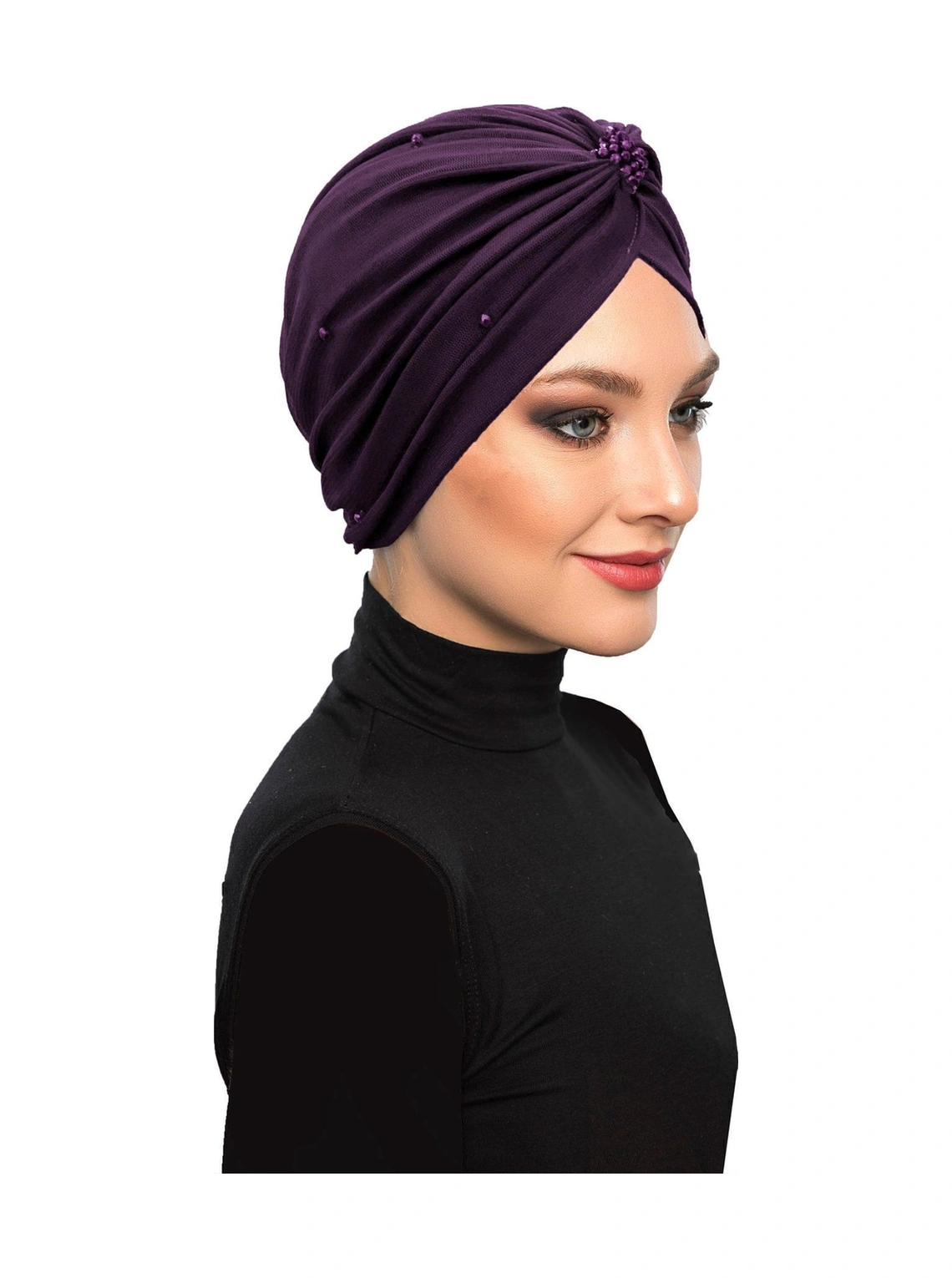 Kristal Tüllü Astarlı Mor Hazır Türban Tesettür Abiye Bone Mor