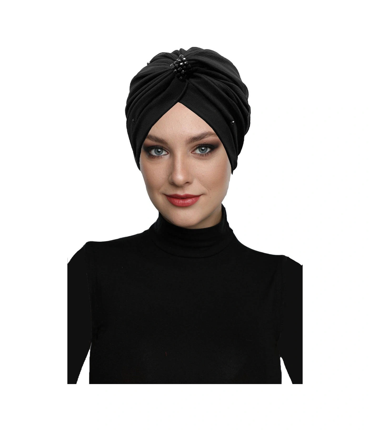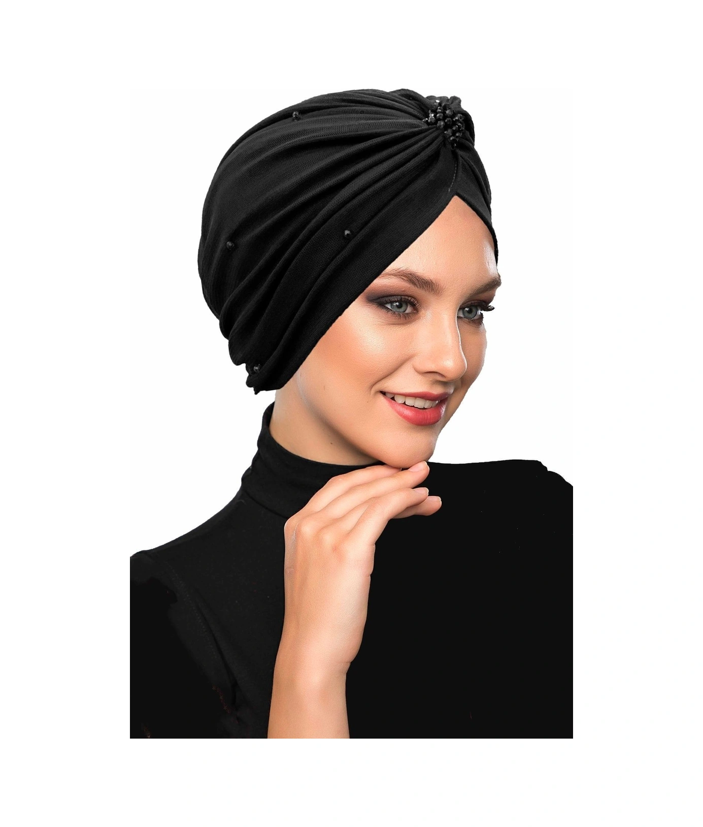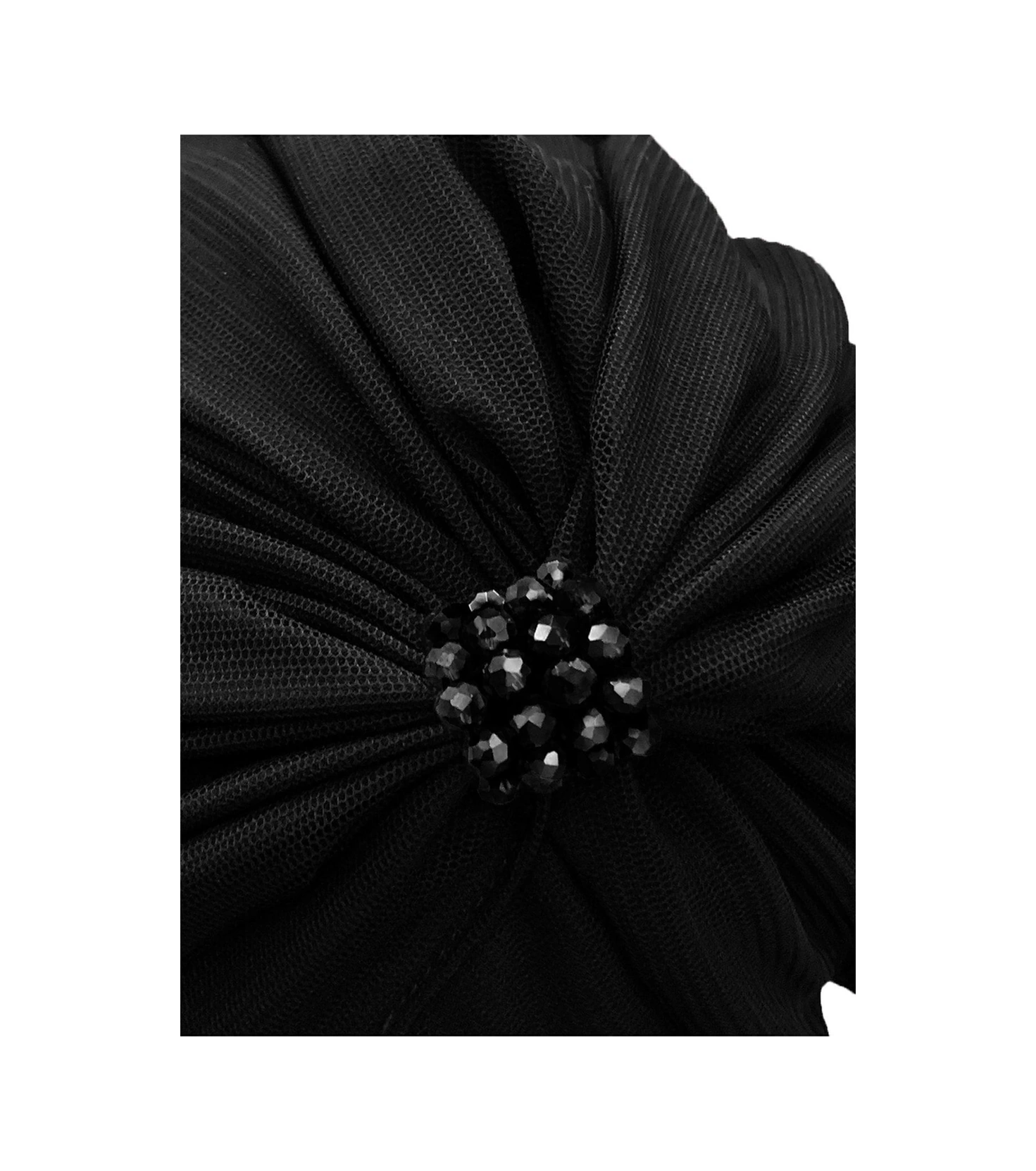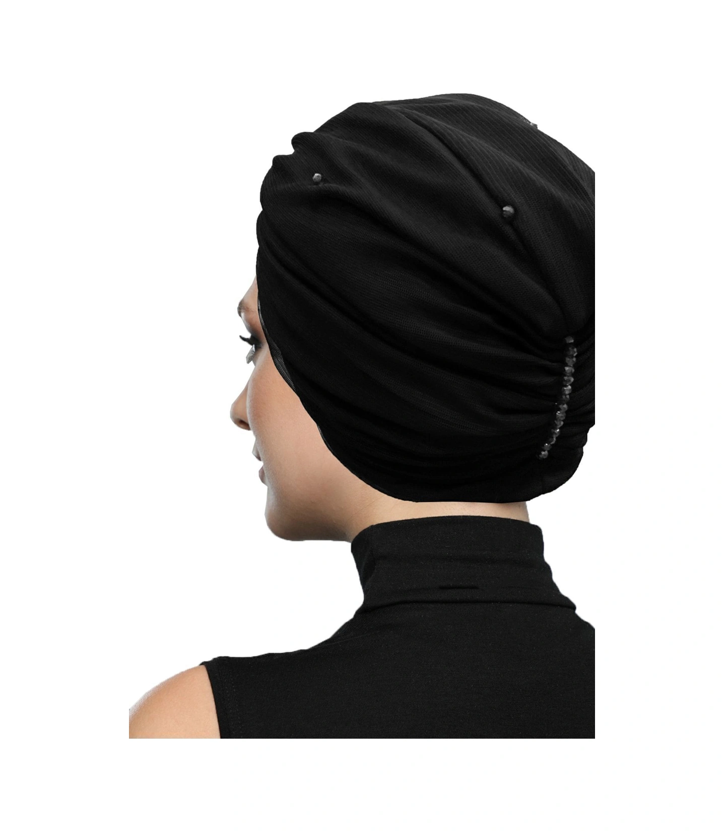 Kristal Tüllü Astarlı Siyah Hazır Türban Tesettür Abiye Bone Siyah
