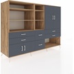 Kronos Dolap 10 Raflı 6 Çekmeceli 4 Kapaklı 220x59x163 Çam-antras Çam-antrasit
