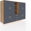 Kronos Dolap 11 Raflı 3 Çekmeceli 8 Kapaklı 220x59x163 Çam-antras Çam-antrasit