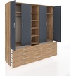 Kronos Dolap 9 Raflı 10 Çekmeceli 2 Askılı 220x59x243 Çam-antrasit/çam Antrasıt/atlas Çam