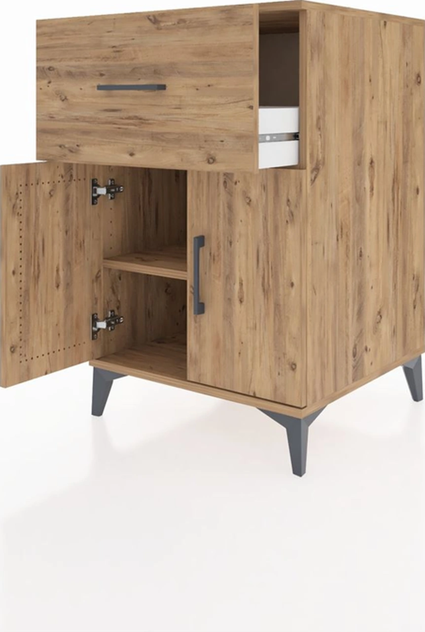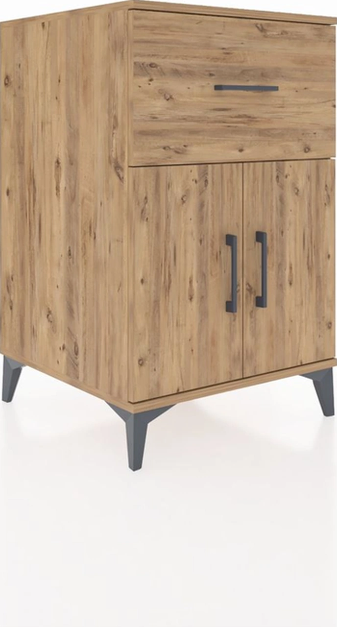 Kronos Komodin Tek Raflı Tek Çekmeceli 2 Kapaklı 60x59x96 Çam... Çam