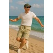 Küf Yeşili Kargo Cepli Paraşüt Kumaş Erkek Şort-1806 Küf Yeşili