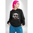Kulaklıklı Hipster Portre Panda Kadın Erkek Siyah Kapüşonlu Sweatshirt Hoodie Siyah