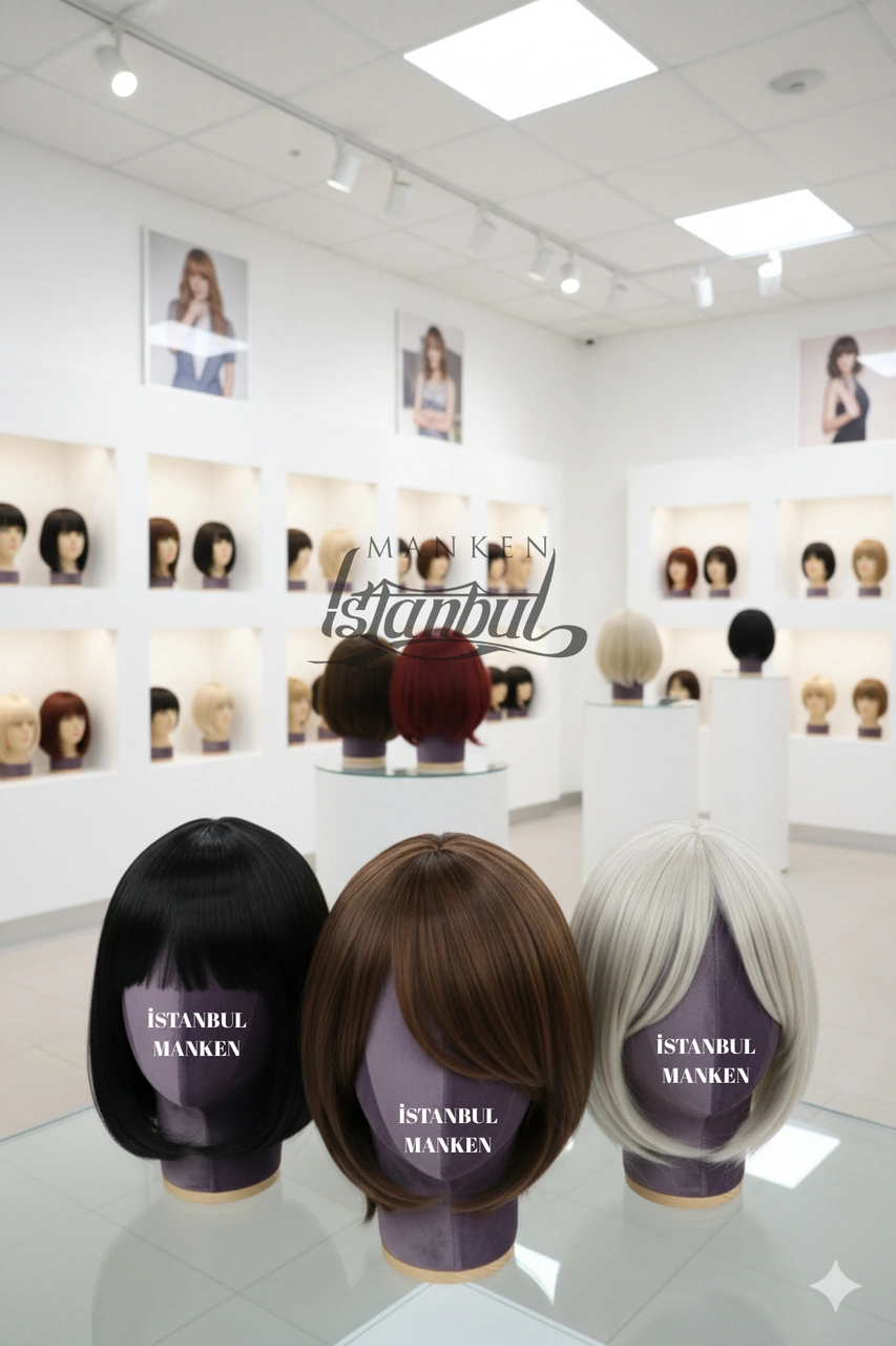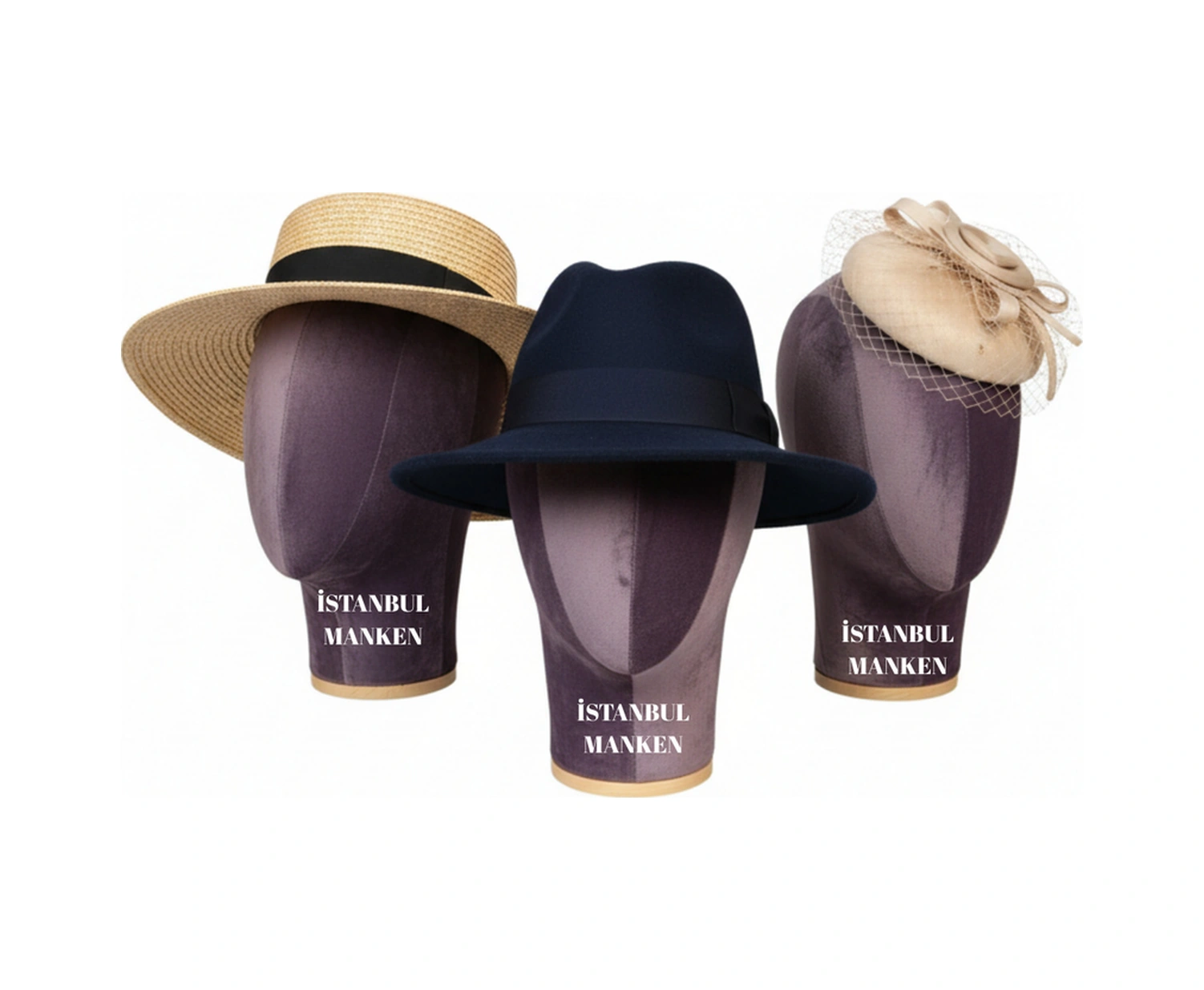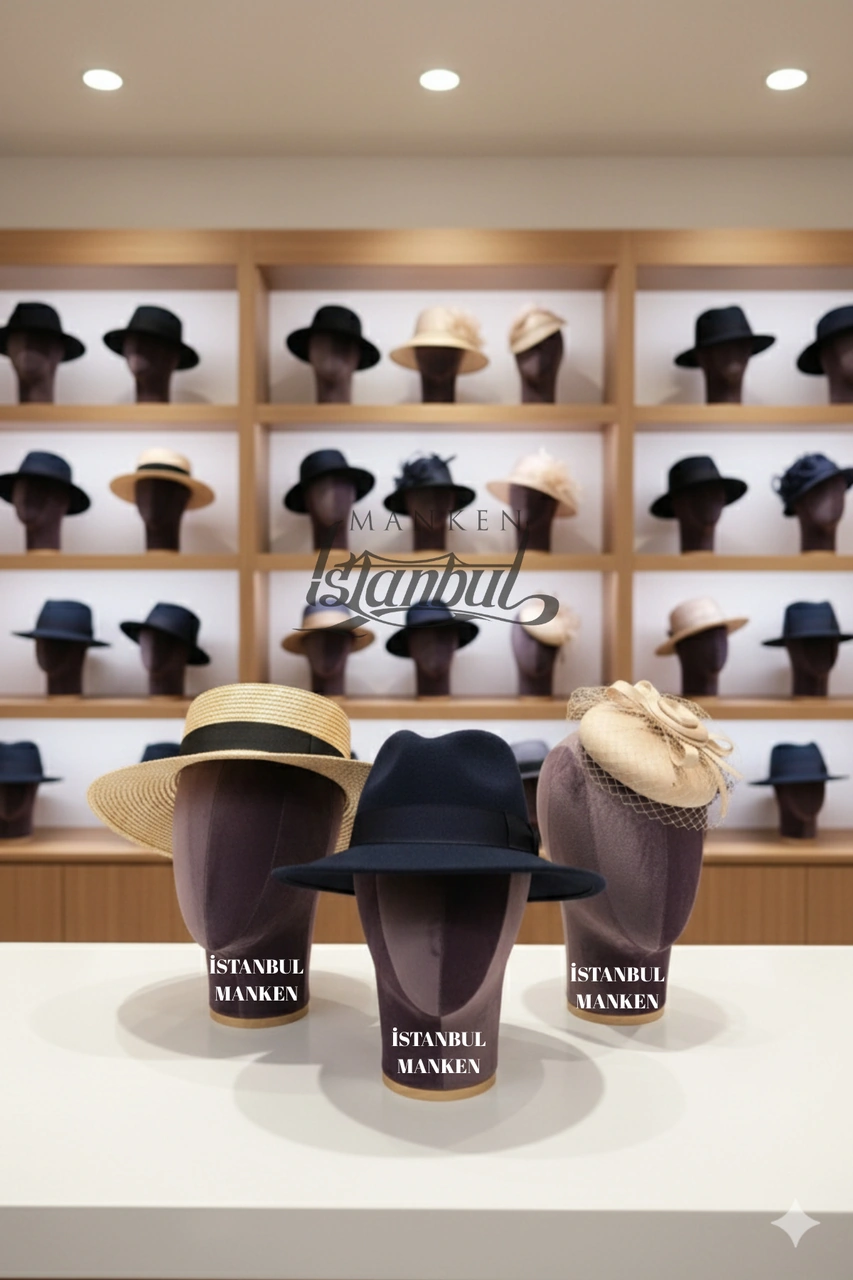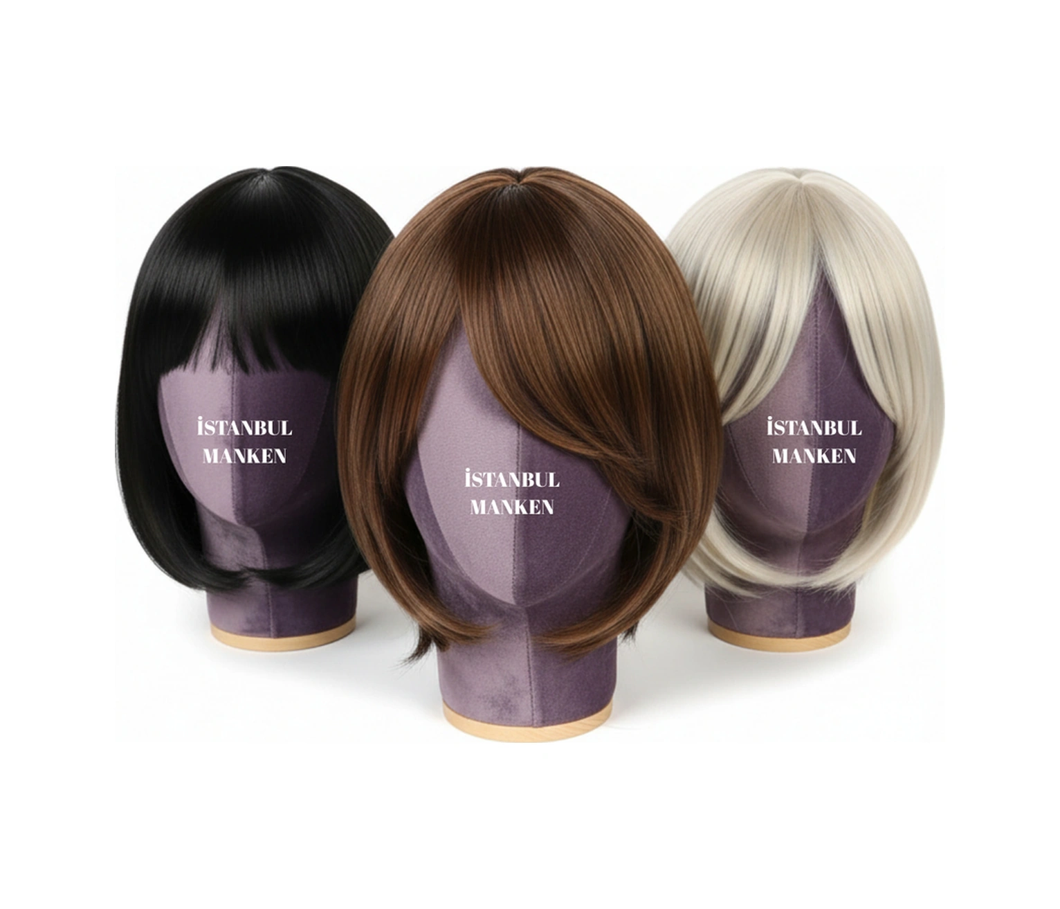 Kumaş Kaplı Polyester Kafa Mankeni Aksesuar Mankeni Şapka Mankeni Peruk Mankeni 0012