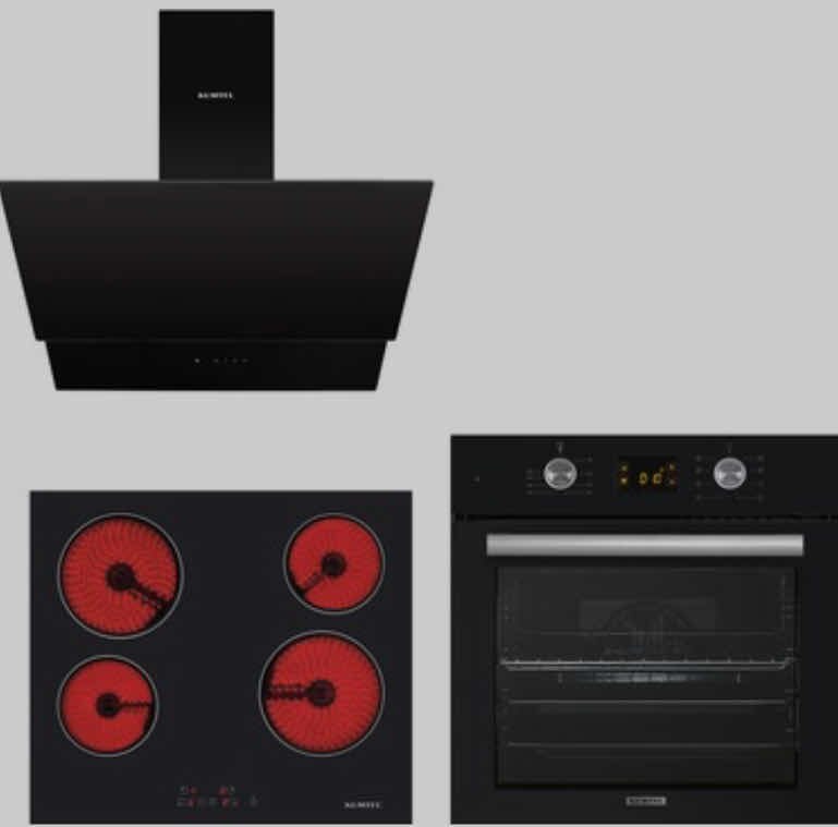 Kumtel B66-SF2 MT - V6 - 04T - DA6-830 Turbo Vitroseramik Kristal Siyah Cam Ankastre Set