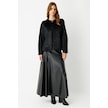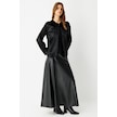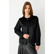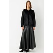 Kürk Ceketli Deri Etekli Takım Siyah Siyah