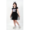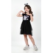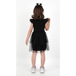 Kuromi Siyah Tül Detaylı Kısa Kollu Kız Çocuk Elbisesi Siyah