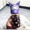 Kuromi Tasarımlı Kapaklı Cam Kupa -1544