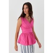 Kuşak Bağlamalı Kolsuz Bluz Fuşya FUŞYA