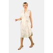Kuşaklı Çiçek Desenli Bej Elbise Bej