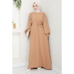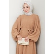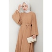 Kuşaklı Ponpon Detay Ayrobin Elbise 1538 - Vizon Vizon