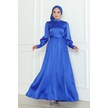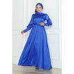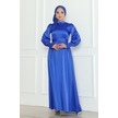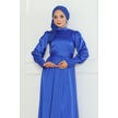 Kuşaklı Saten Abiye 1136 - Saks Mavisi