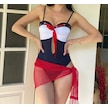 Kuşgözü Detaylı Mayo Pareo Takım Lacivert