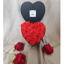 Kutuda Solmayan Güller Sevgiliye Anneye 19 Adet Yapay Gül Kırmızı Dekorasyon Hediyelik Siyah Kutu Gü