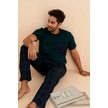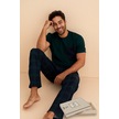 Kutulu- Premium Pamuklu Kısa Kollu Erkek Pijama Takımı- Ekose Babalar Günü Hediyesi Yesil