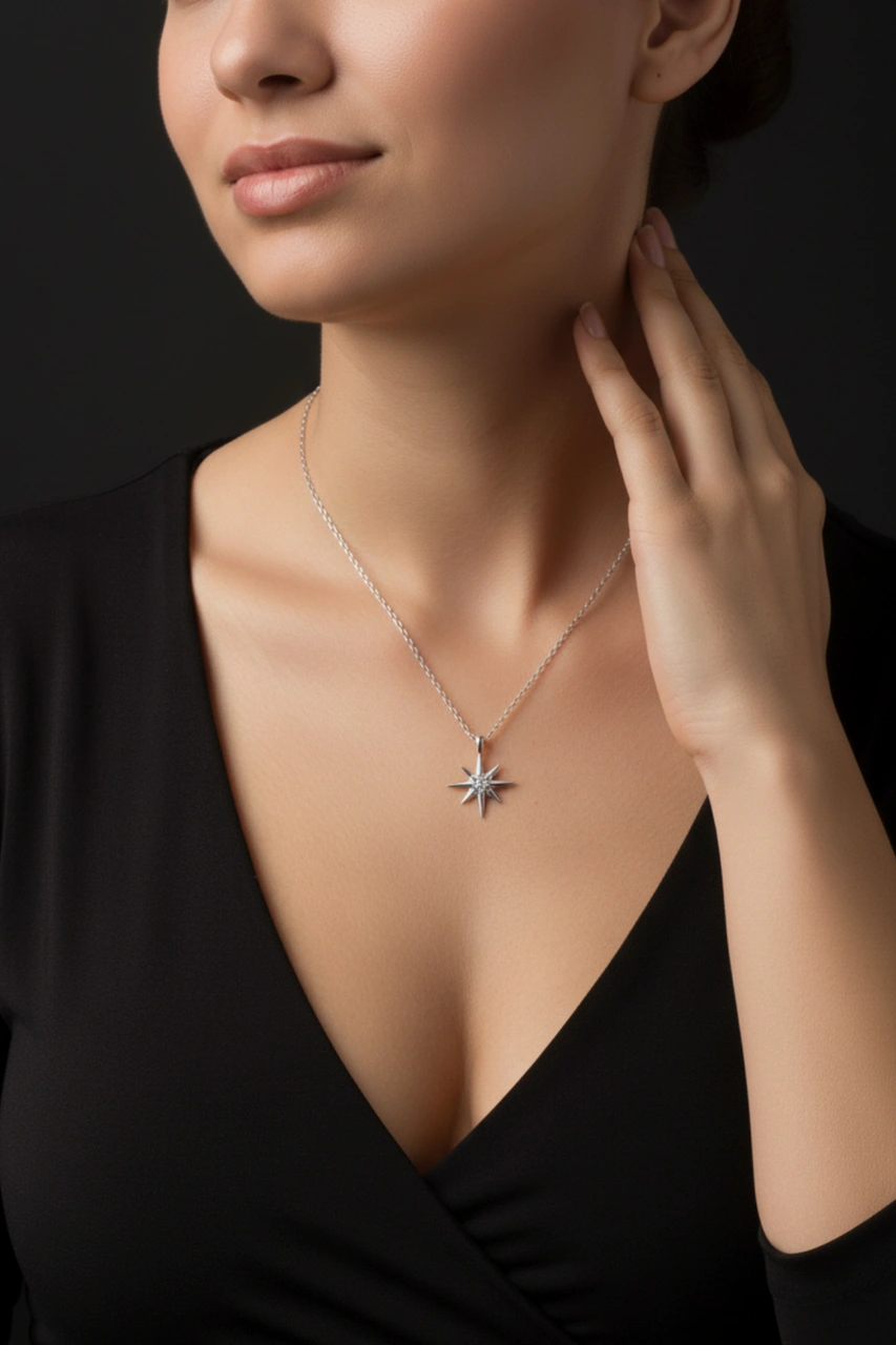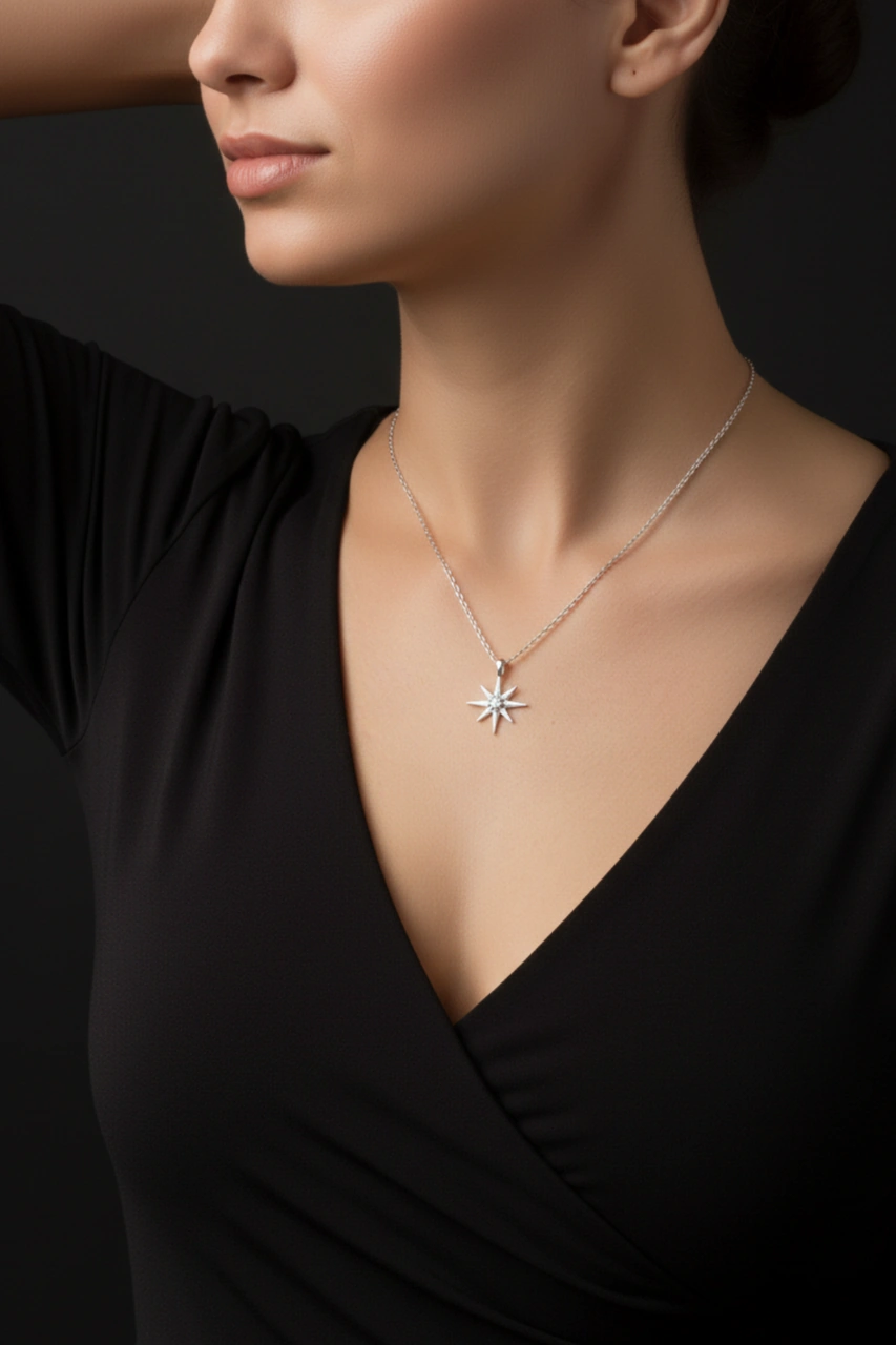 Kutup Yıldızı Tasarım Minimal 925 Ayar Gümüş Kadın Kolye Gümüş