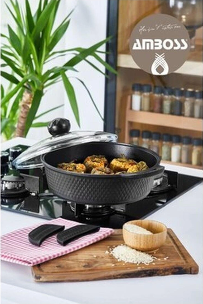 Kuvars 26 Cm Döküm Basık Tencere, Şık Ve Dayanıklı Mutfak Gereci Bakır - Siyah