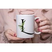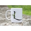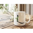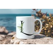 L Harf Zarif Yaprak Desenli Kupa Bardak - Naturel Sade Alfabe Harfli Bardak - Kişiye Özel Hediye Beyaz