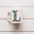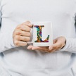 L Harfi Bardak 330 Ml İsme/harfe Özel Hediye, Renkli Harf Tasarım Beyaz