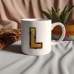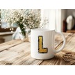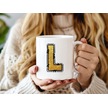 L Harfi Gold Simli Kupa Işıltılı Alfabe Harf Tasarımlı Kahve Kupası - Kişiye Özel Hediye Beyaz