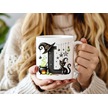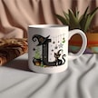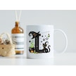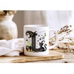 L Harfli Halloween Kedili Figür Kupa Bardak - Şapkalı Ve Kazanlı İsme Özel Kupa - Hediye 07 Beyaz