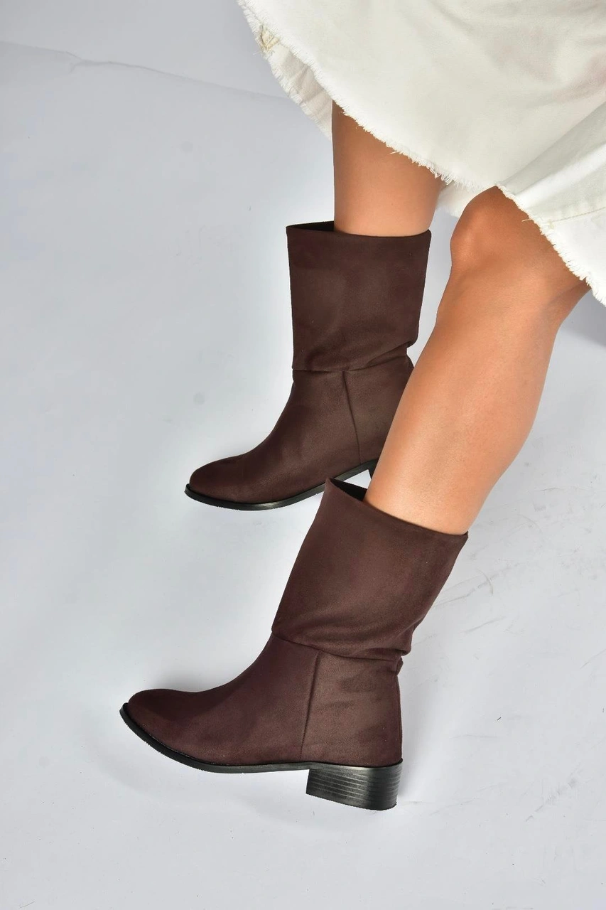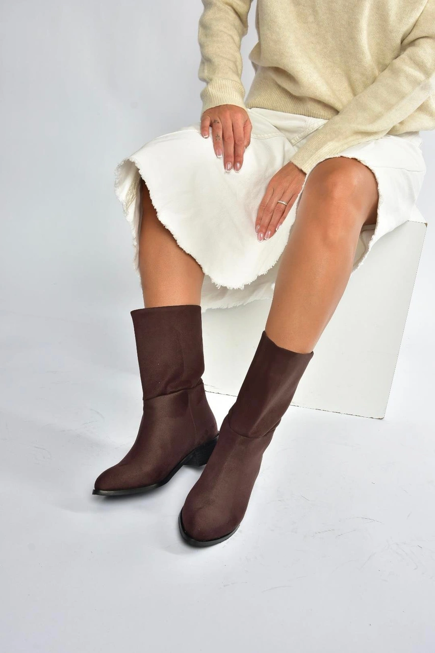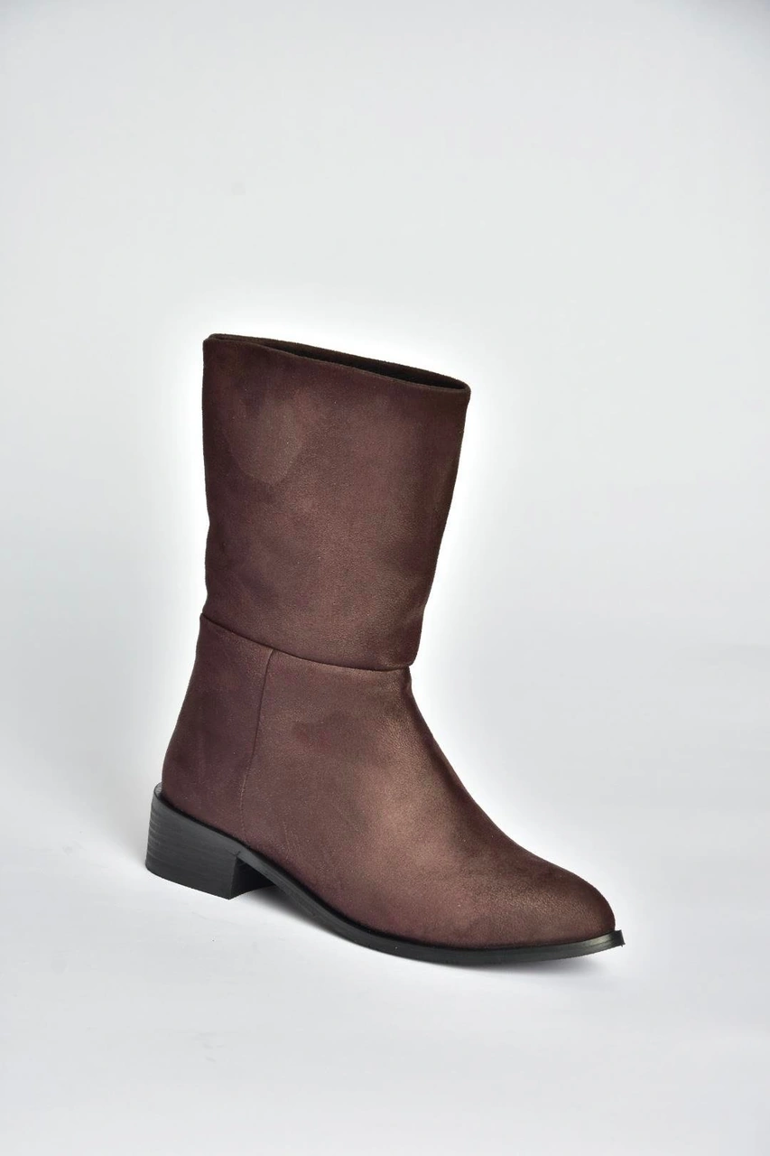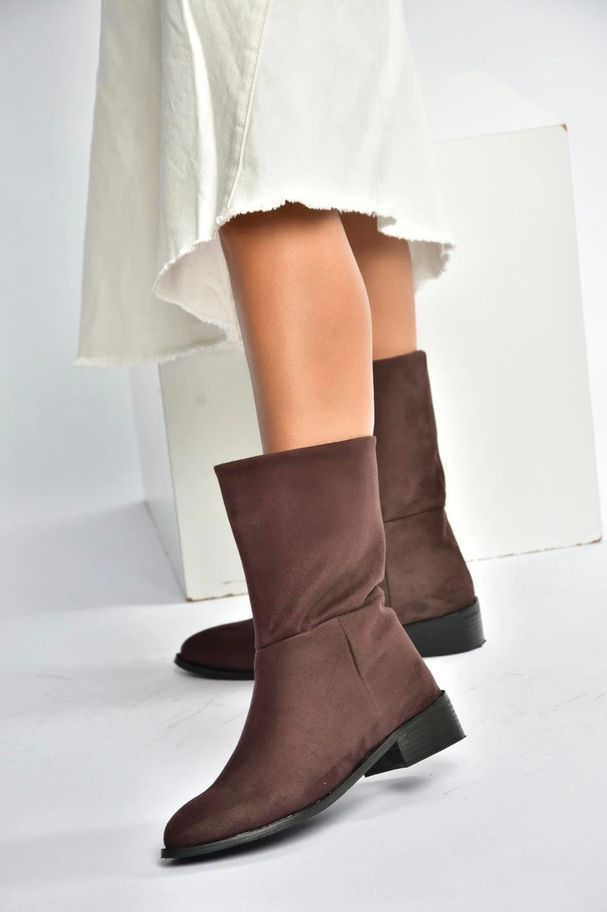 L726597702 Kahverengi Süet Düz Taban Günlük Kadın Bot Kahverengi-süet
