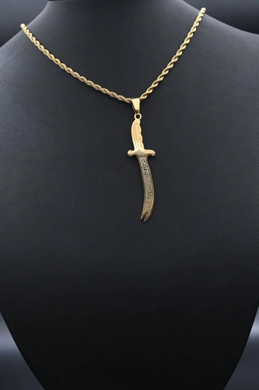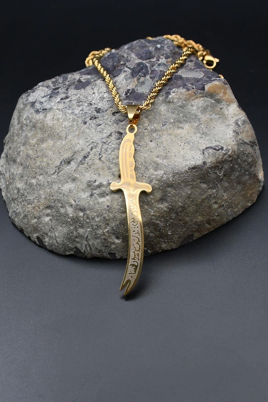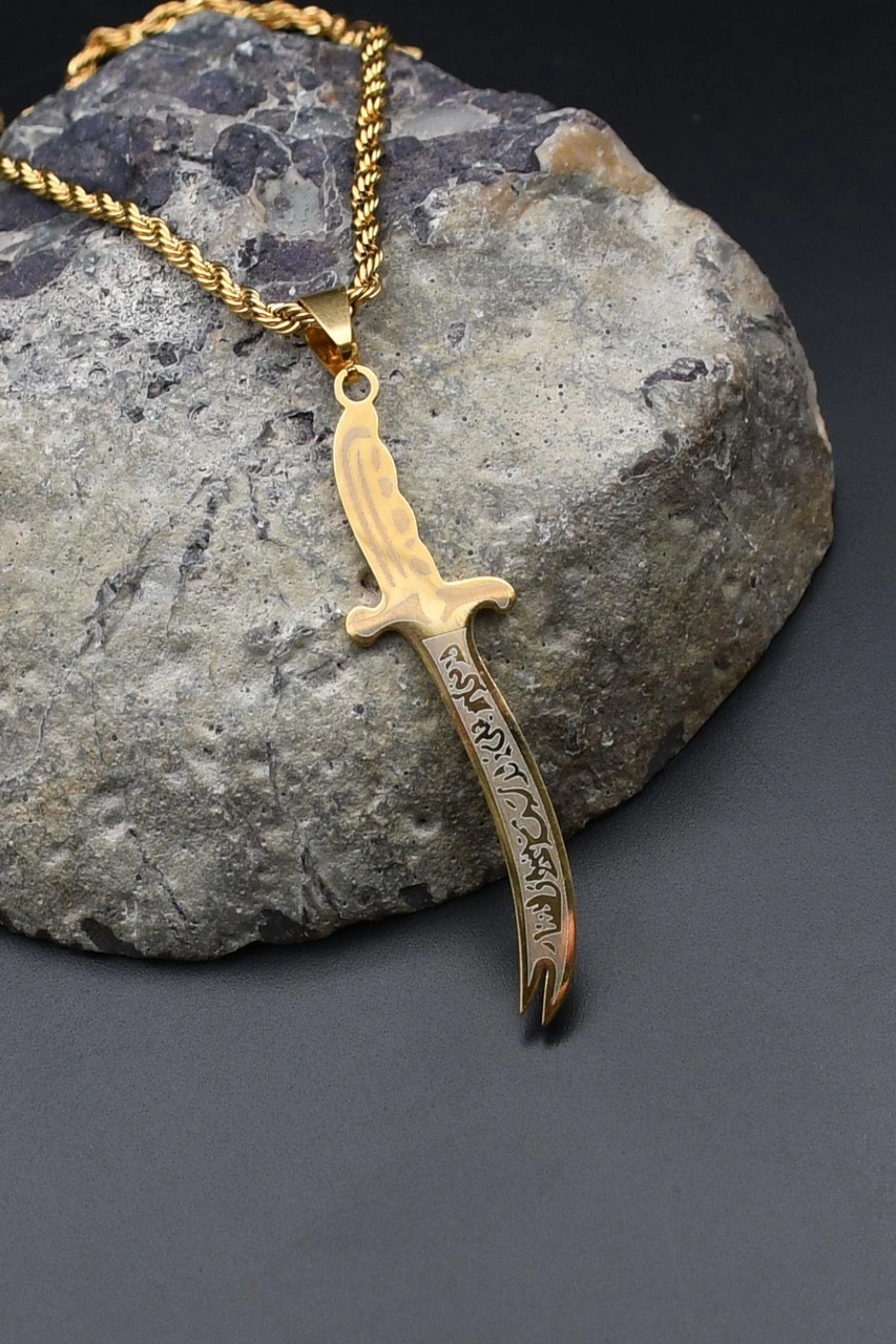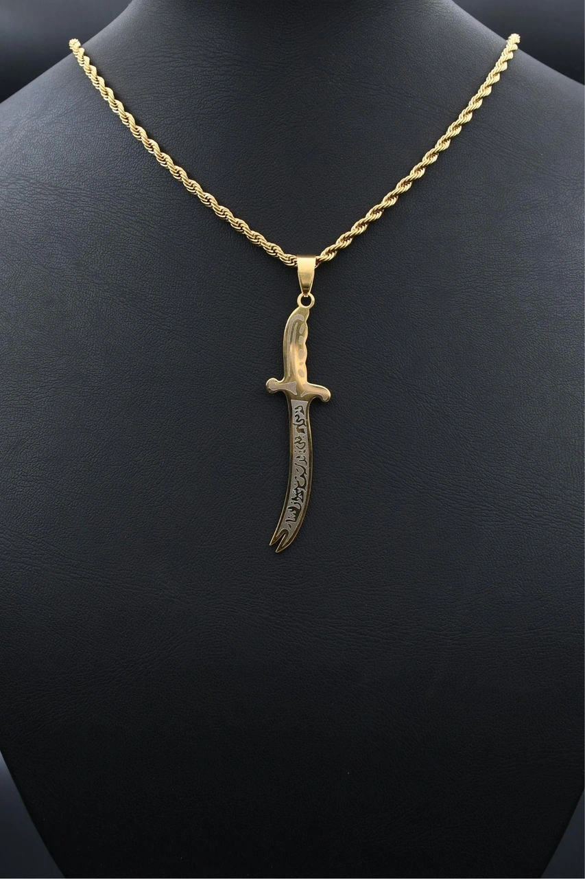 La Feta İlla Ali La Seyfe İlla Yazlı Zülfikar Kolye Paslanmaz Çelik Zincir Altın Kaplama 3mm 902308 Altın