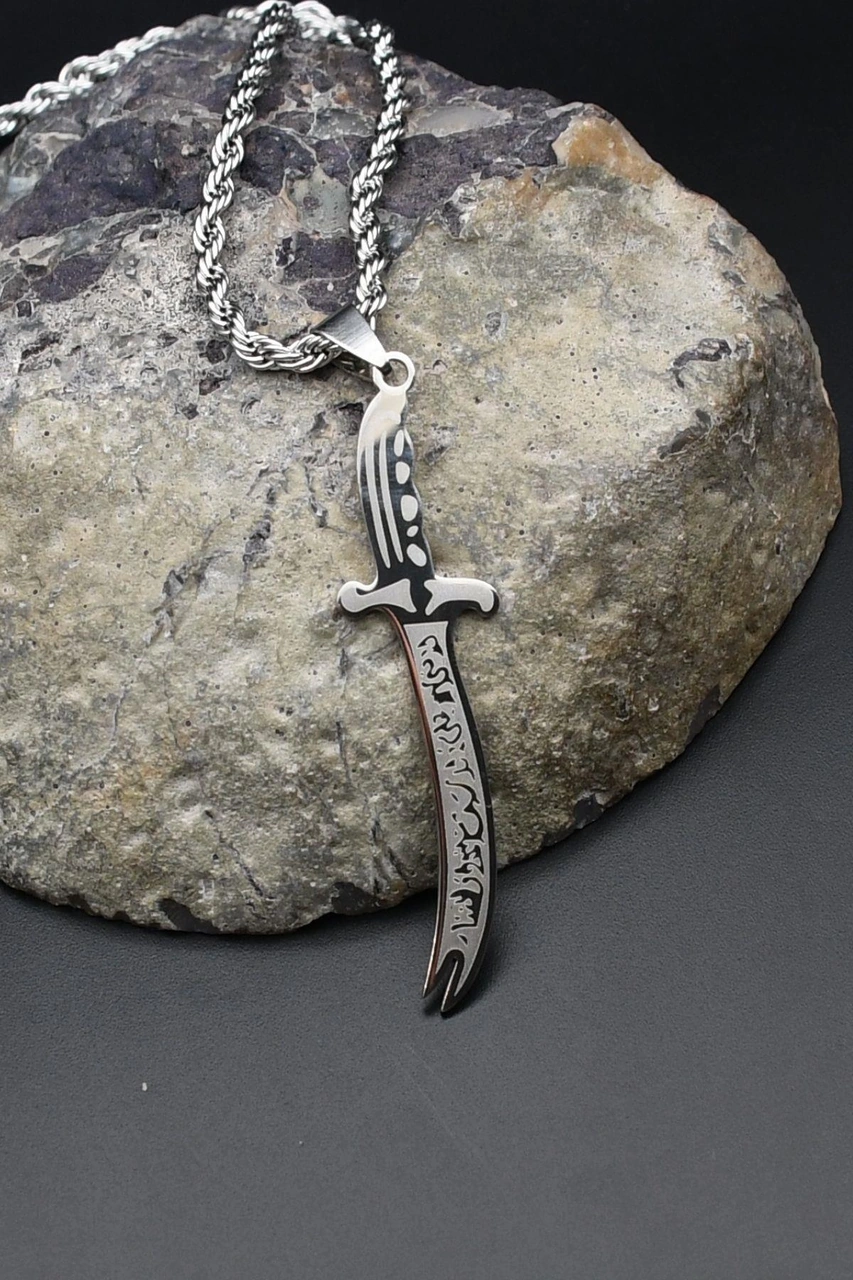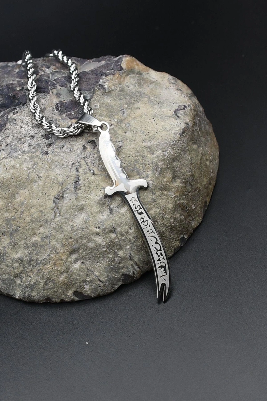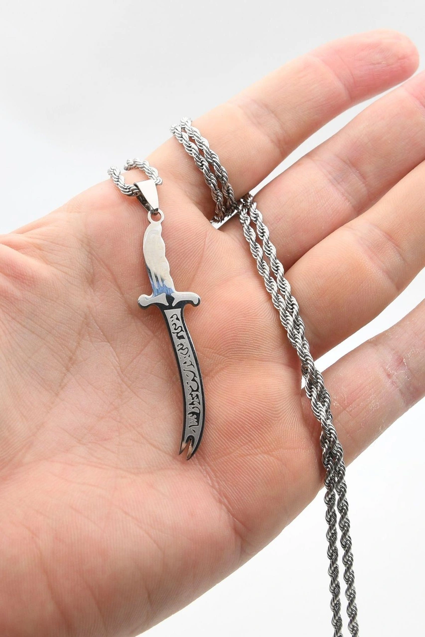 La Feta İlla Ali La Seyfe İlla Zülfikar Yazlı Kolye Paslanmaz Çelik Zincir 3mm 902304 Gümüş