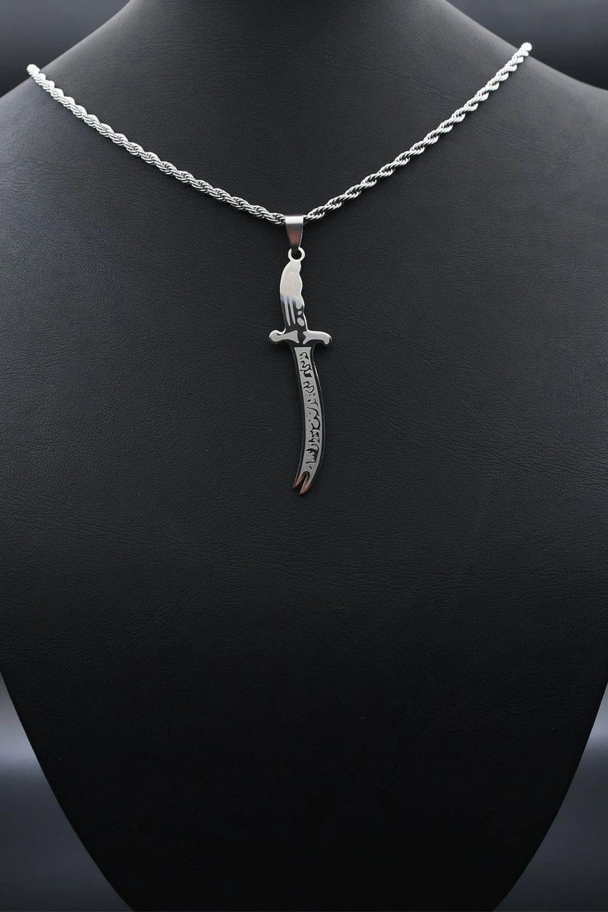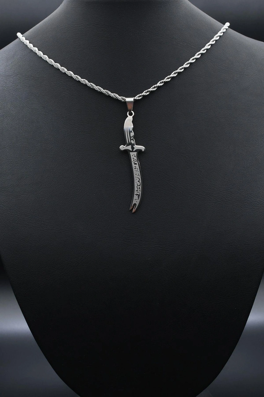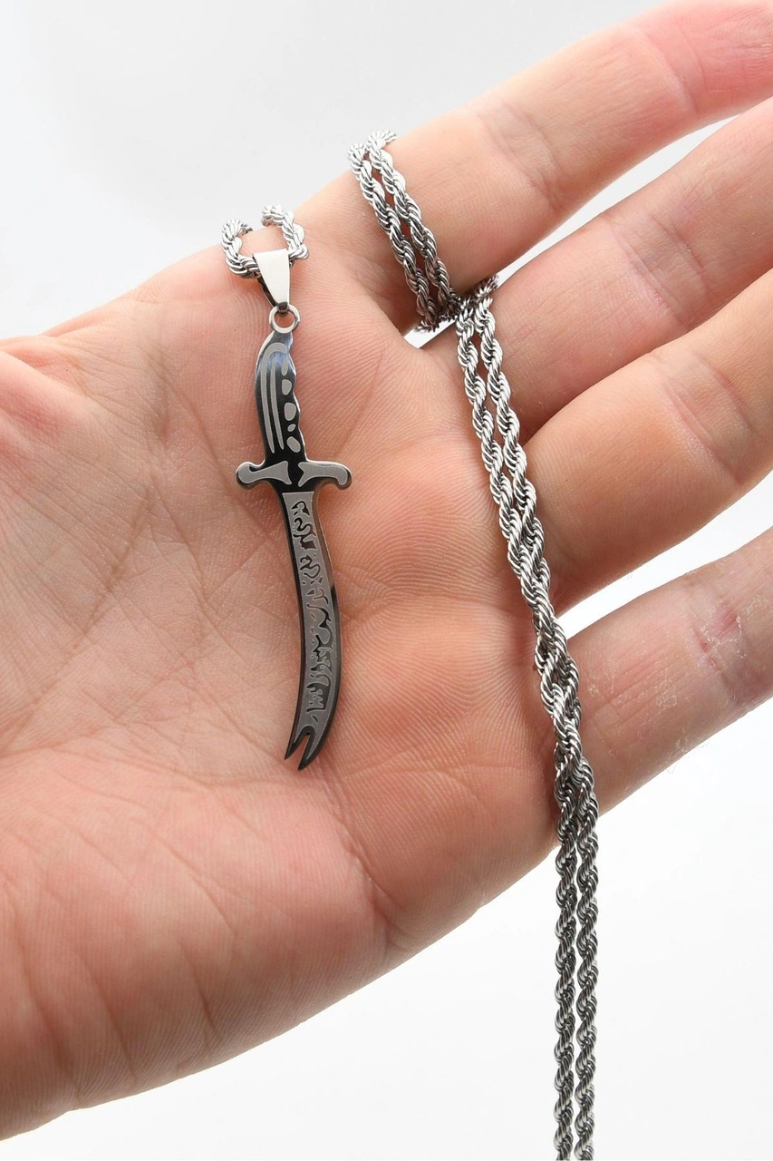 La Feta İlla Ali La Seyfe İlla Zülfikar Yazlı Kolye Paslanmaz Çelik Zincir 3mm 902304 Gümüş