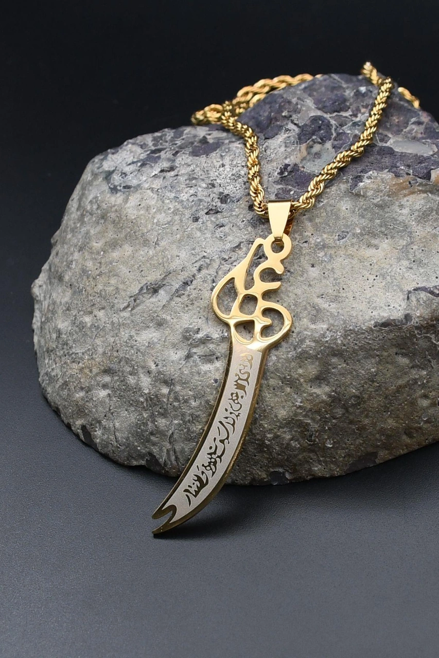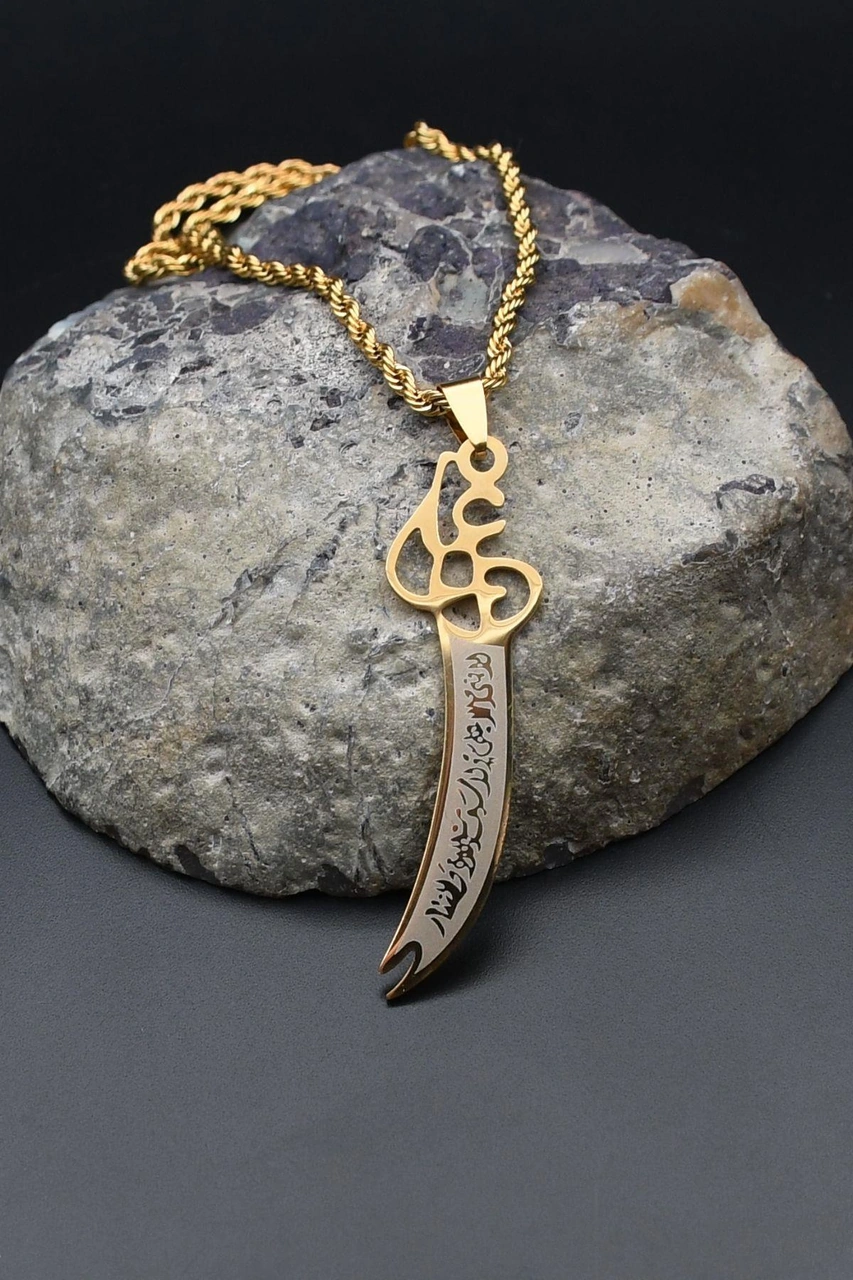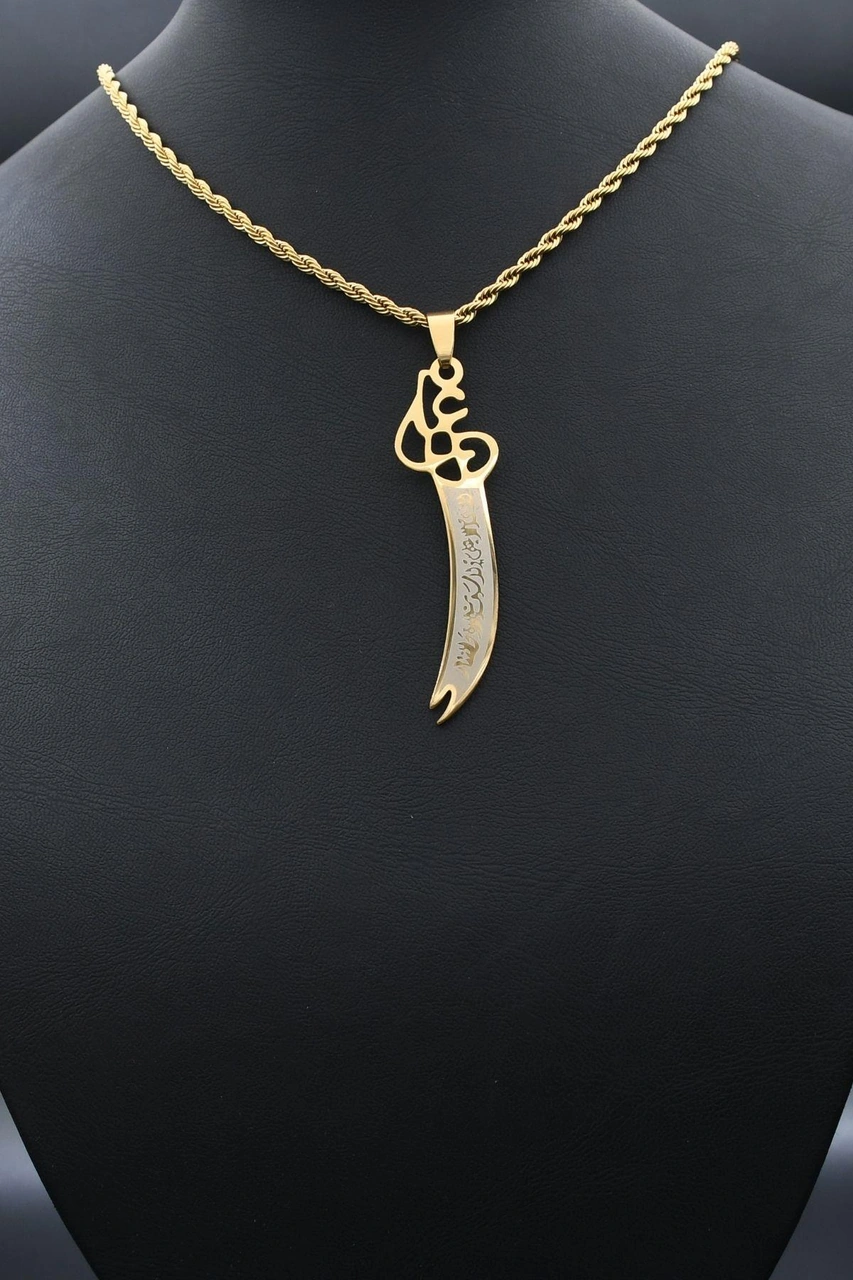 La Feta İlla Ali La Seyfe İlla Zülfikar Yazlı Kolye Paslanmaz Çelik Zincir Altın Kaplama 3mm 902307 Altın