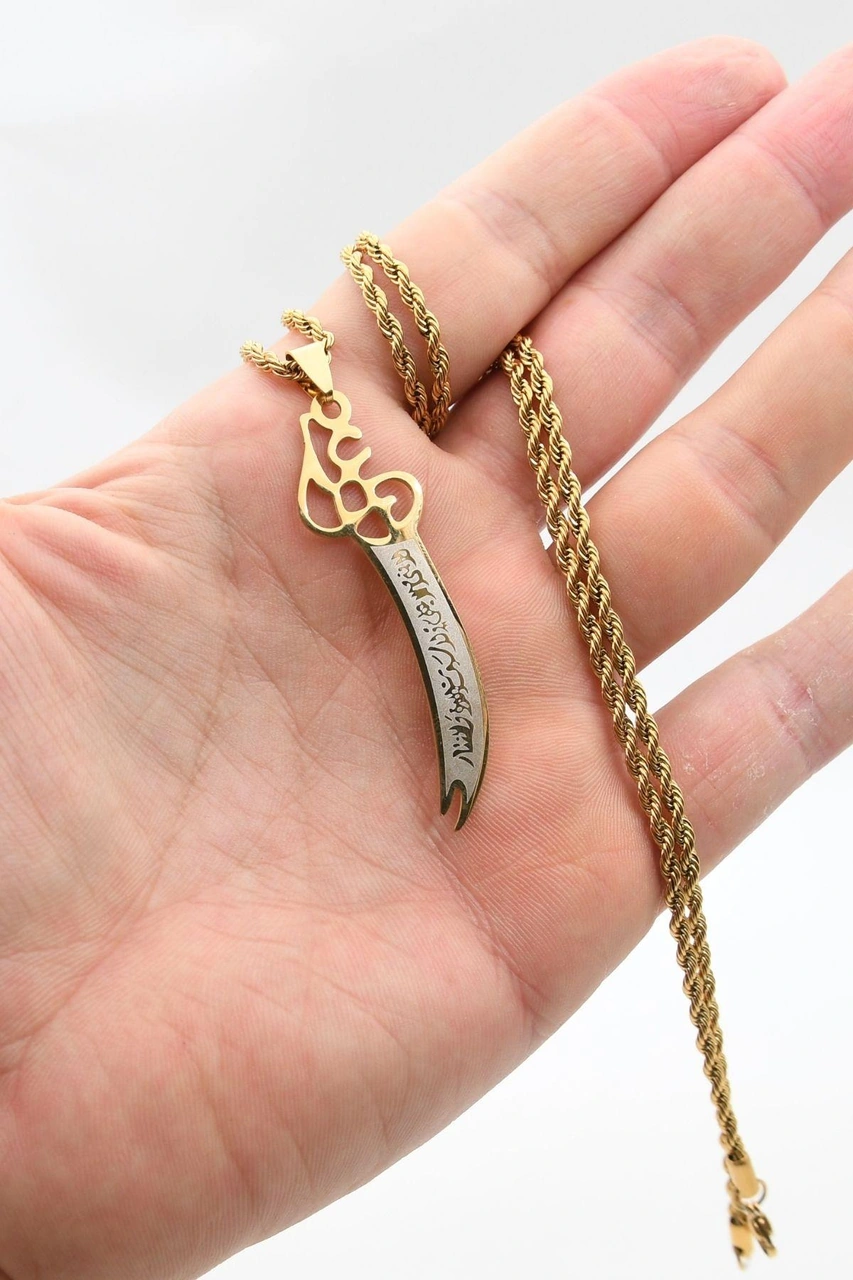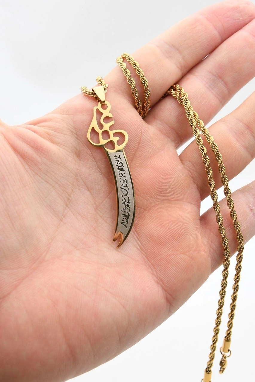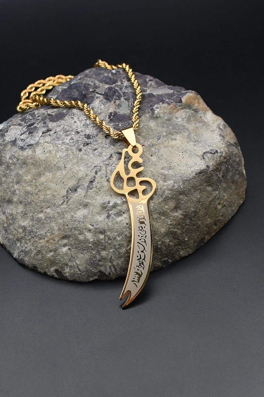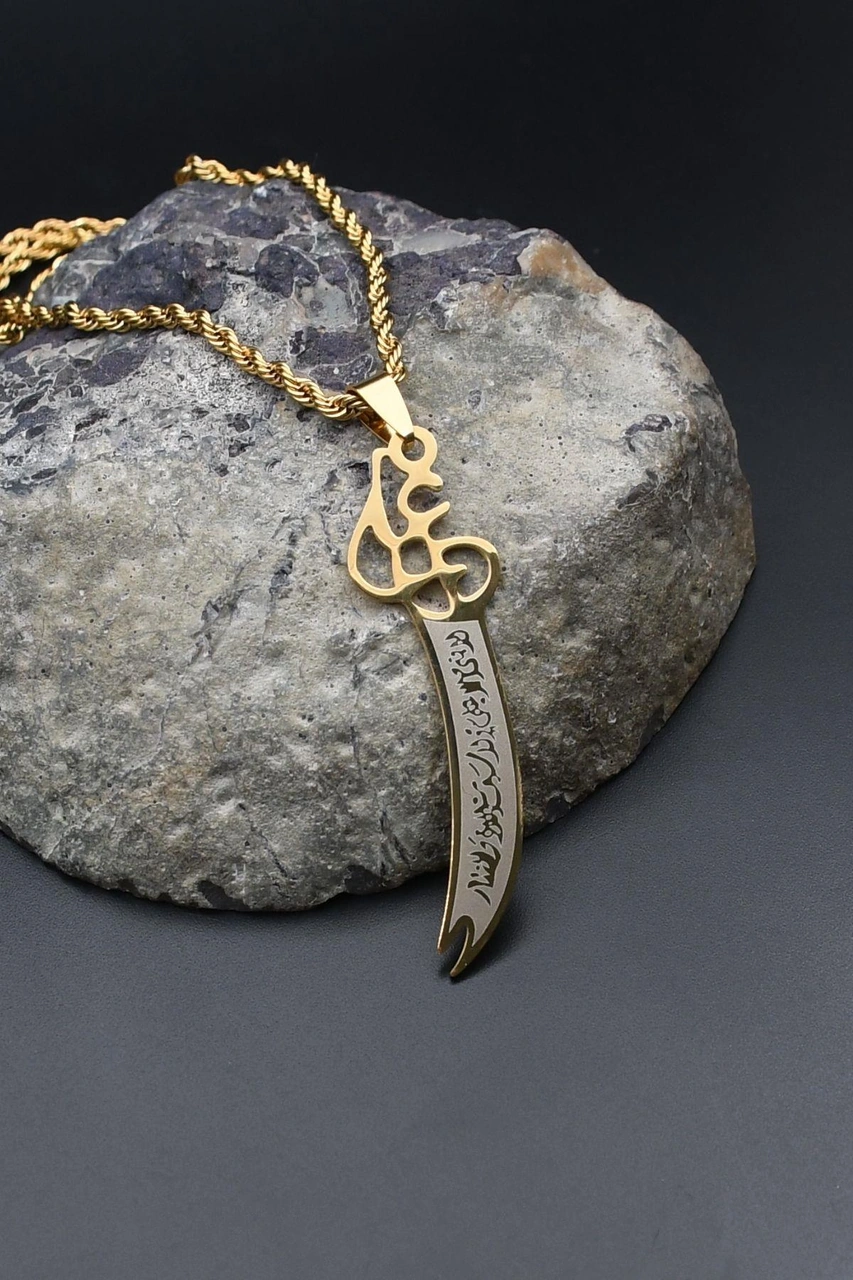 La Feta İlla Ali La Seyfe İlla Zülfikar Yazlı Kolye Paslanmaz Çelik Zincir Altın Kaplama 3mm 902307 Altın