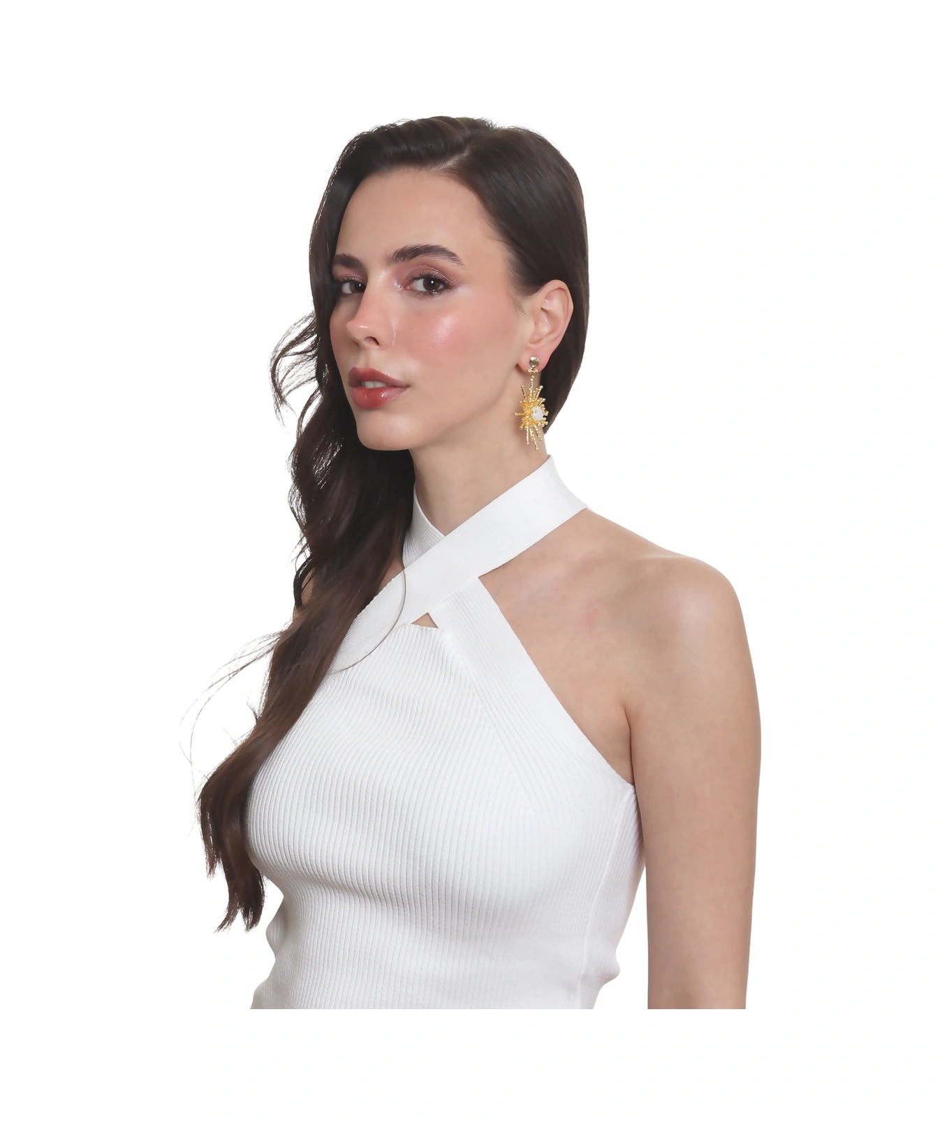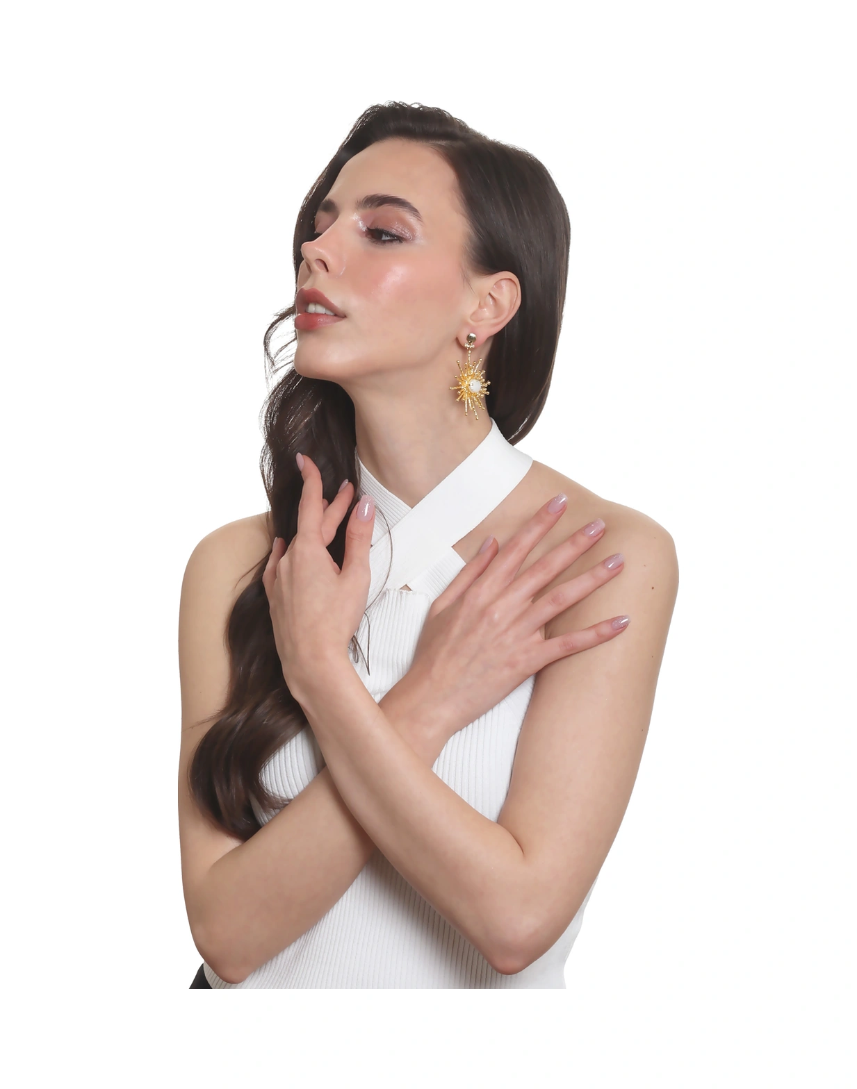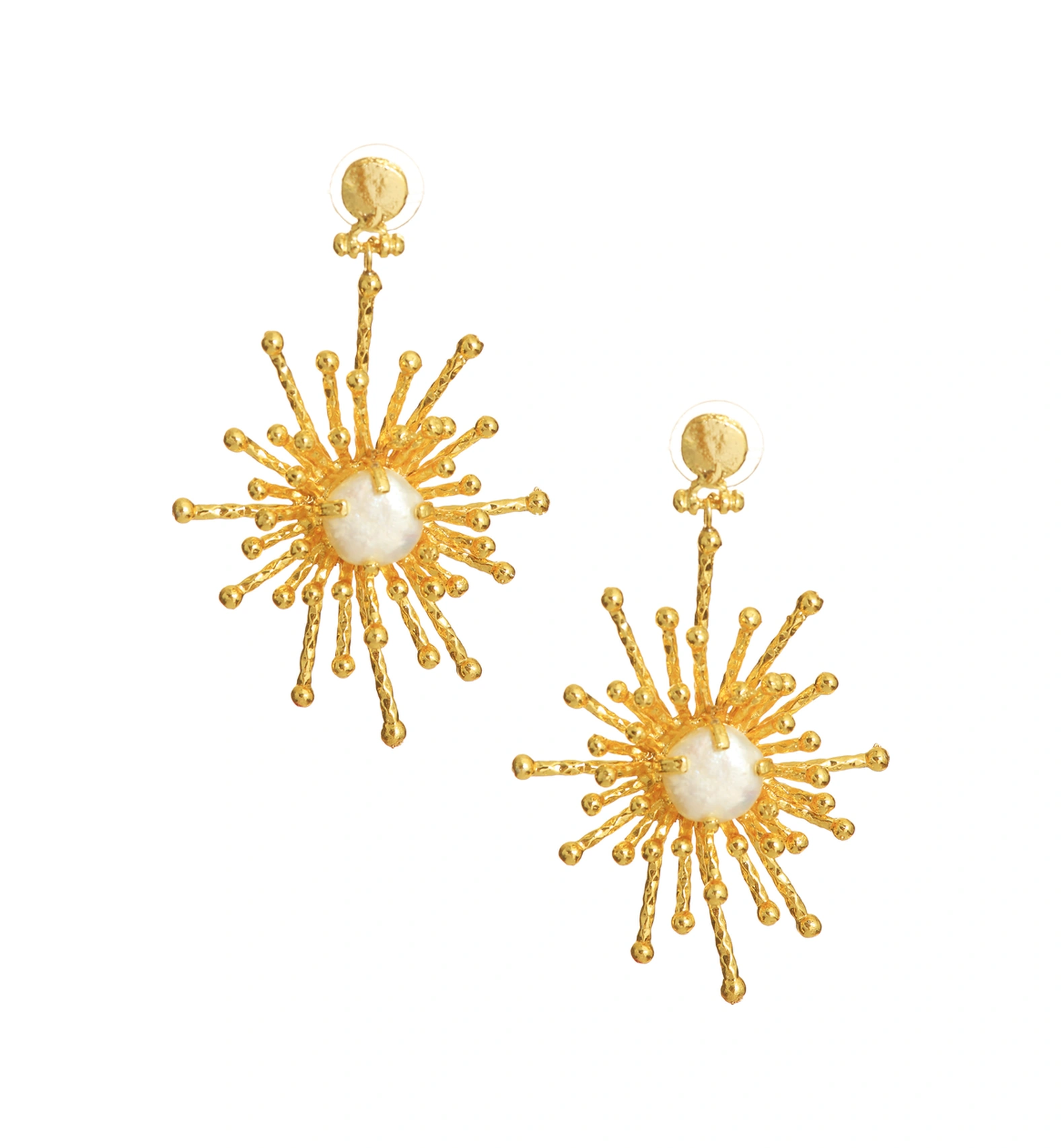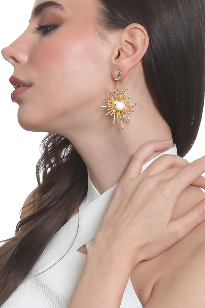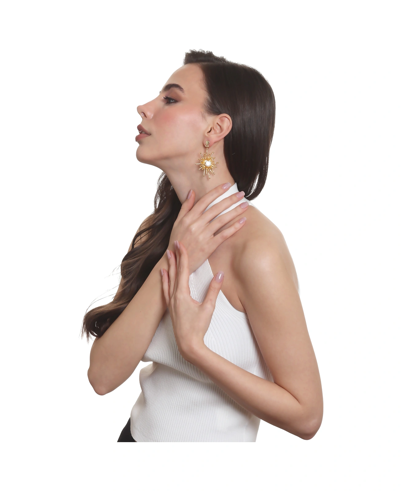 Labalaba Kadın Altın Renk Kaplama Sedef Detaylı Çivili Model Büyük Güneş Küpe altın