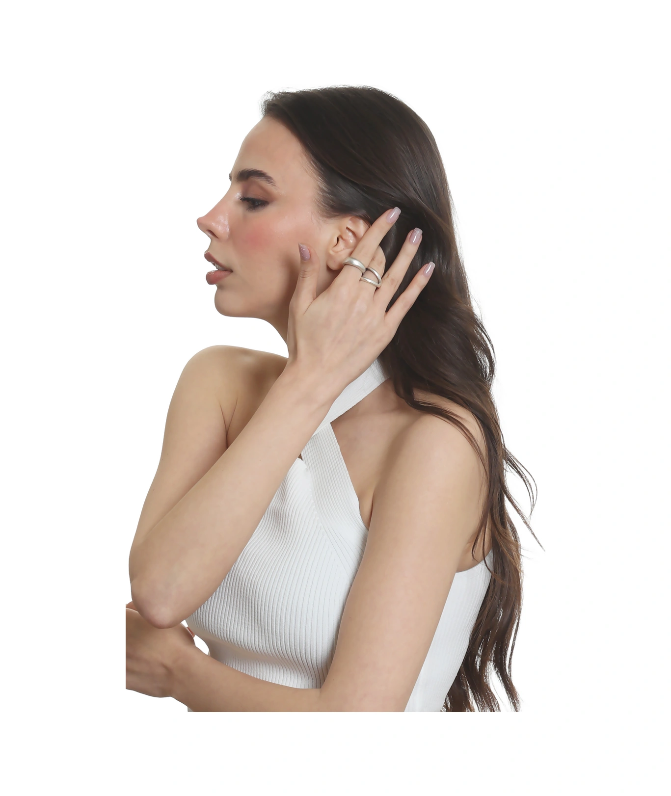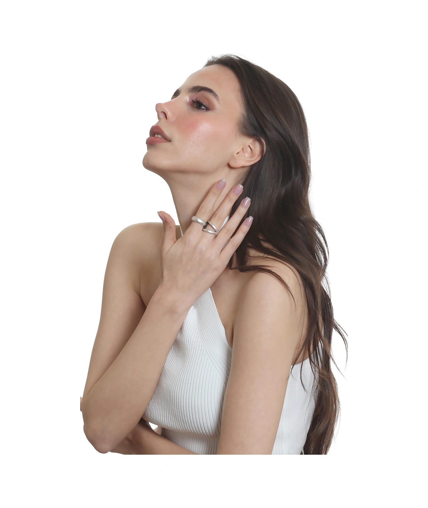 Labalaba Kadın İki Parmak Tasarım Yüzük Antik Gümüş