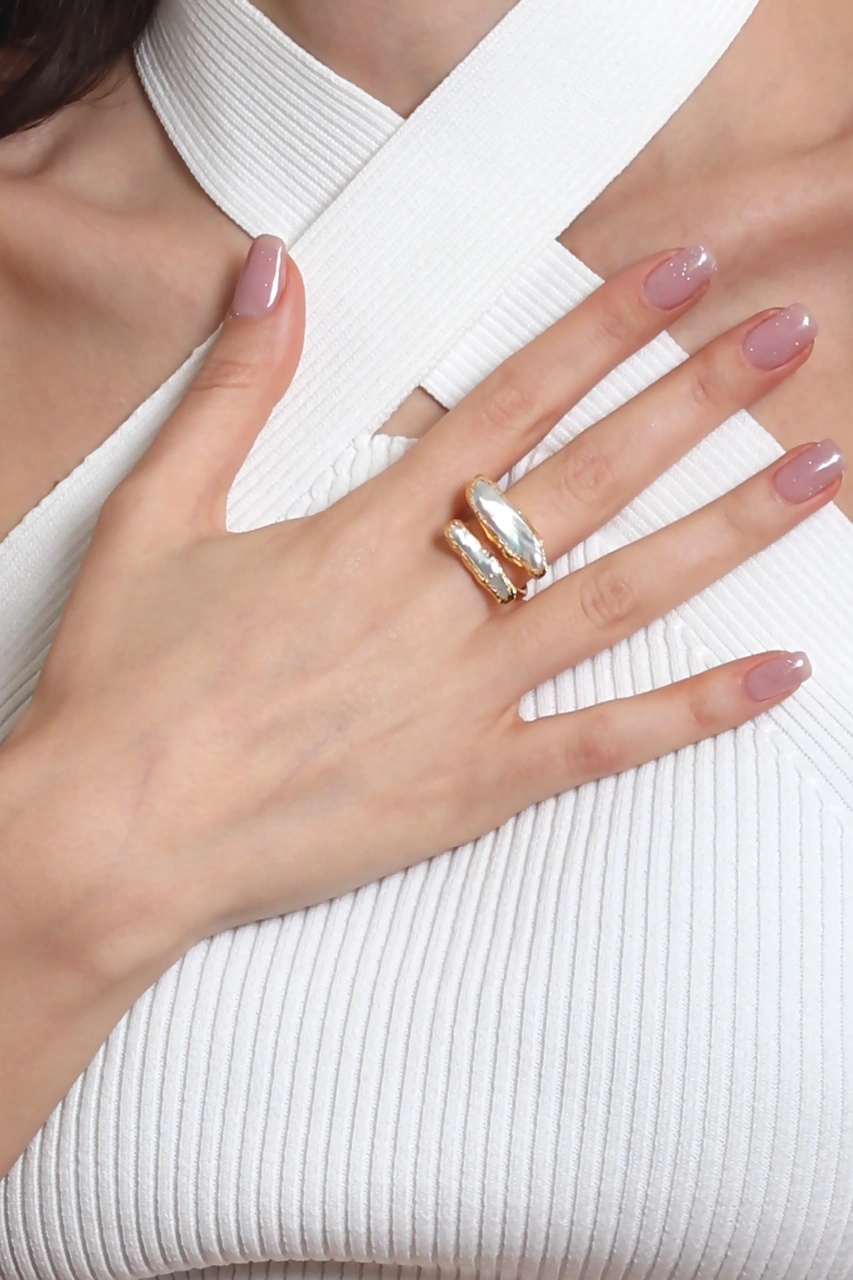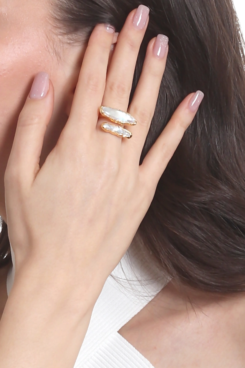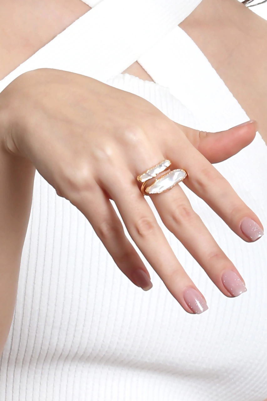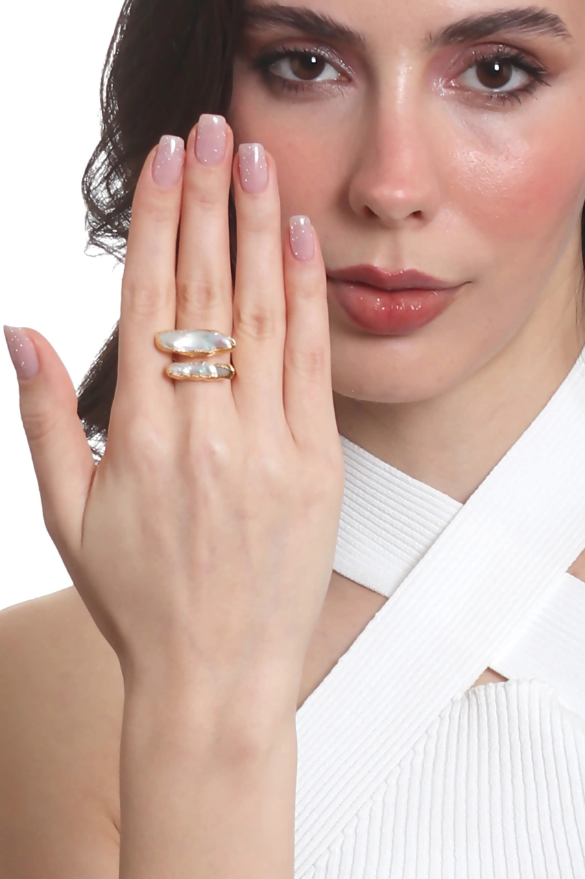 Labalaba Kadın İki Telli El Yapımı Tasarım İnci Yüzük Altın